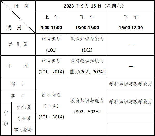 2023年下半年中小學教師資格筆試