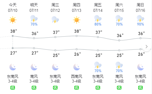 前些日子,嵊州經(jīng)歷了前一種天氣,午后到夜里總會有一場或大或小的雨出現(xiàn),而本周,后一種更“殘酷”的、從早熱到晚的天氣就要來了。