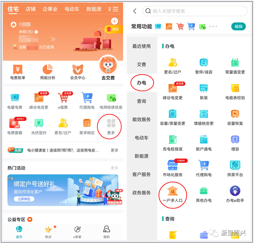 網(wǎng)上國(guó)網(wǎng)App首頁(yè)點(diǎn)擊【更多】-【辦電】-【一戶多人口】。
