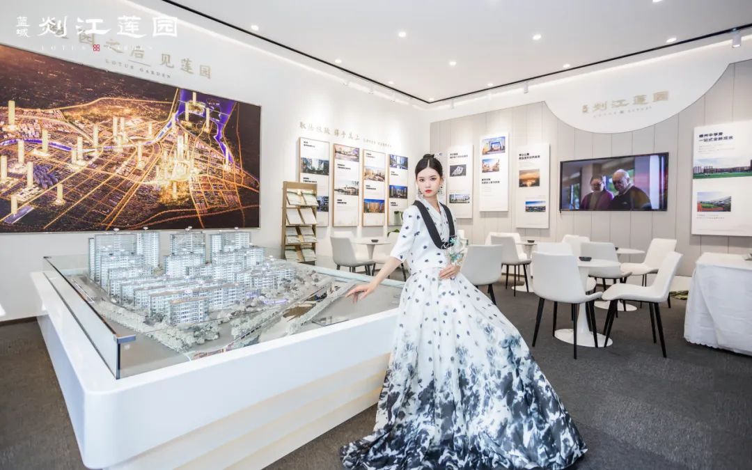 隨著藍城品牌與項目眾領(lǐng)導(dǎo)的共同剪彩,藍城·剡江蓮園城市展廳正式掀開帷幕。映入眼簾,滿目皆是宋氏對嵊州生活的美好構(gòu)思,一場寄予著對嵊州人居理想的迭新之旅正由此啟程。