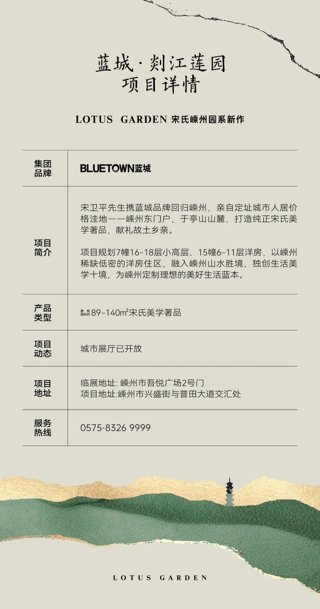 在嵊州你可以永遠相信宋氏作品,在藍城你可以遇見生活的無限精彩。以經(jīng)典回饋嵊州,以傳奇回應(yīng)期盼,藍城·剡江蓮園藏納嵊州的山水、風(fēng)雅、詩畫、精致,用情用心,把最美好的作品獻給故鄉(xiāng)、獻給最親近的人。