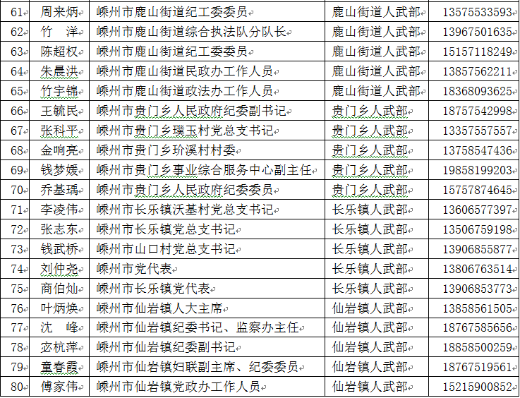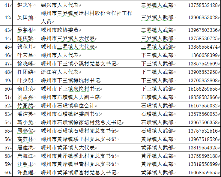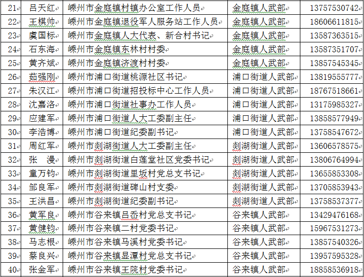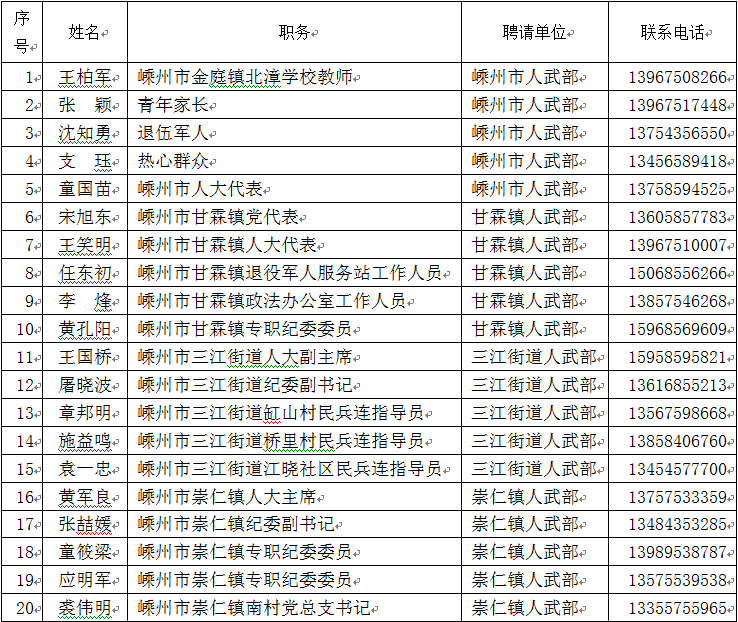 嵊州市廉潔征兵監(jiān)督員名單