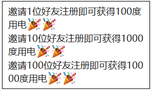 邀請(qǐng)好友注冊(cè)可獲得對(duì)應(yīng)電量