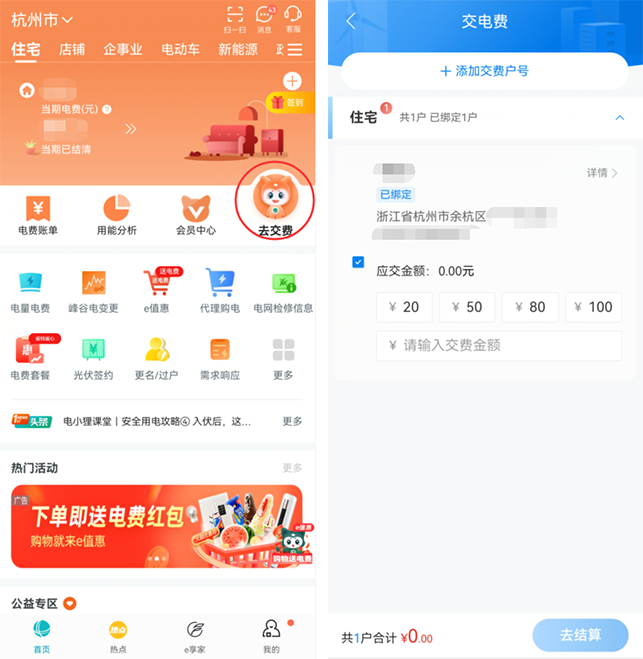 網(wǎng)上國(guó)網(wǎng)App首頁(yè)點(diǎn)擊【去交費(fèi)】,輸入交費(fèi)金額,點(diǎn)擊【去結(jié)算】。