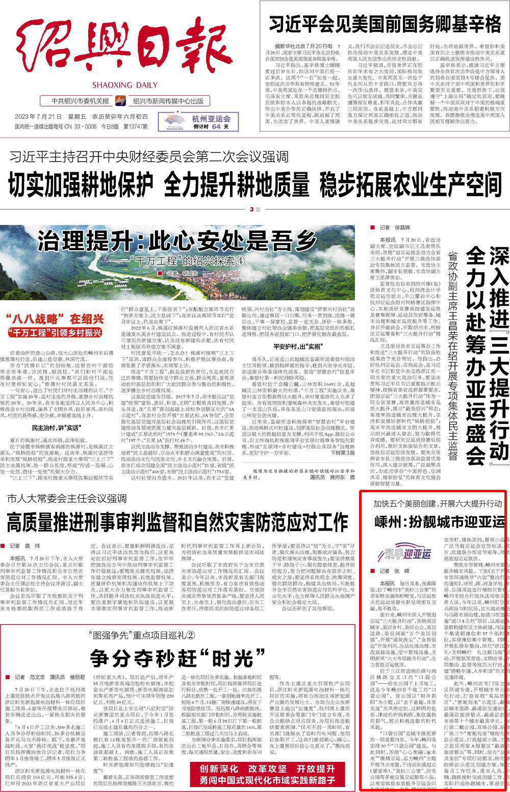 紹興日報(bào)頭版刊登了題為