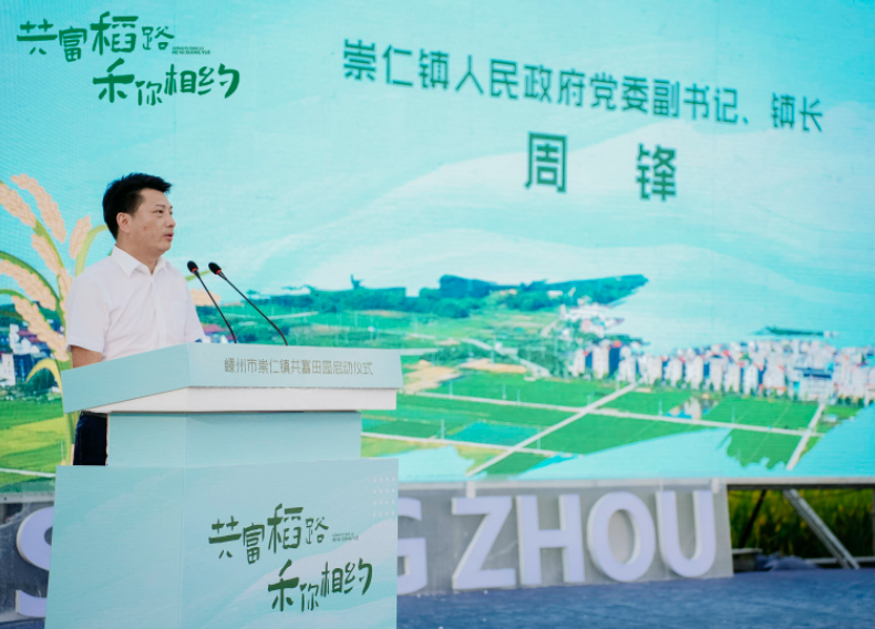 今年的崇仁鎮(zhèn)優(yōu)化升級(jí)“一園兩鎮(zhèn)四區(qū)”產(chǎn)業(yè)布局,奮力打造古鎮(zhèn)旅游目的地和共同富裕樣板鎮(zhèn)。湖蔭,不僅有稻穗沉沉,還有誠(chéng)摯的鄉(xiāng)情和熱情?;顒?dòng)現(xiàn)場(chǎng)周鋒鎮(zhèn)長(zhǎng)致辭。