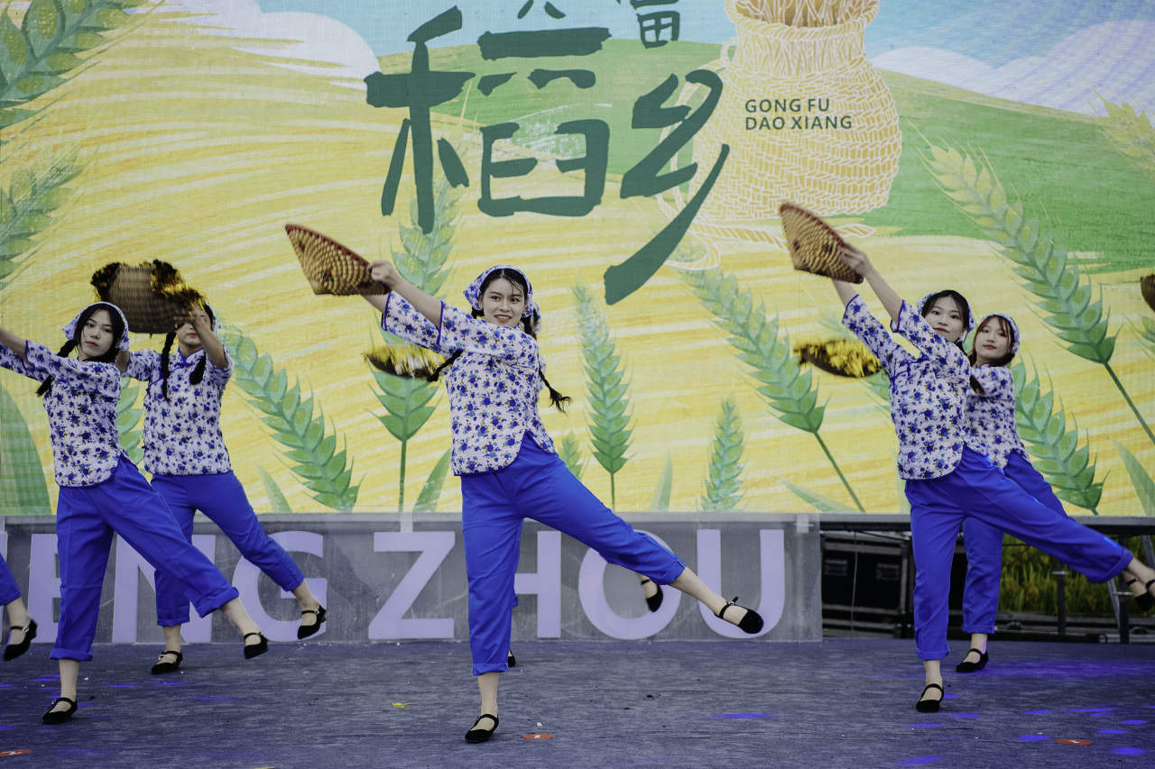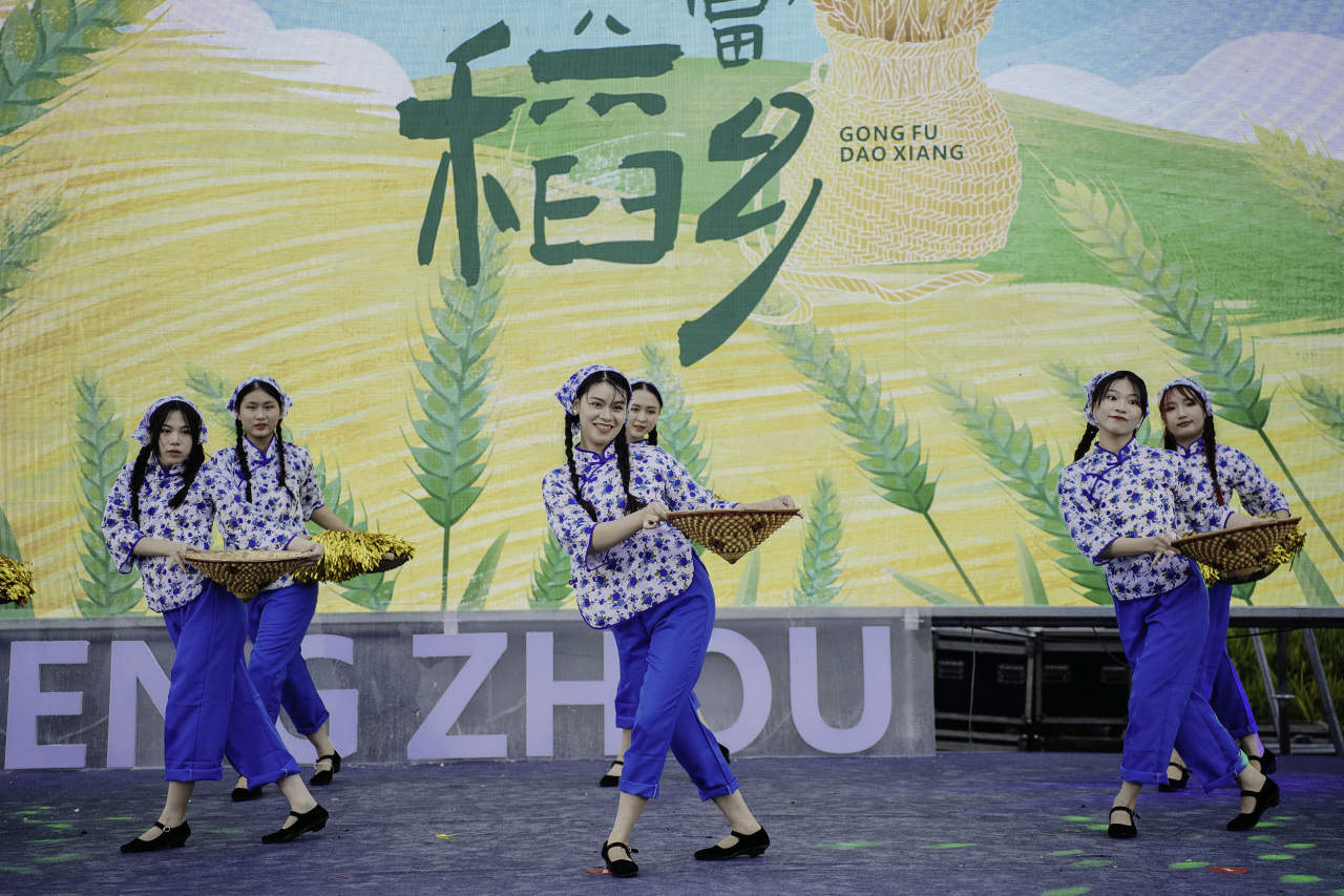 在崇仁鎮(zhèn)共富田園啟動(dòng)儀式的開(kāi)場(chǎng)舞現(xiàn)場(chǎng),臺(tái)上的舞者傾情演出,臺(tái)下的觀眾臉上洋溢著幸福。置身于在千畝稻田中,充滿(mǎn)著豐收的喜悅。