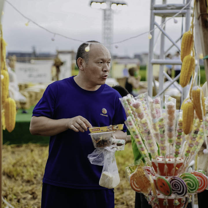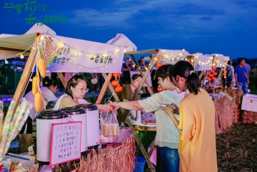 集市在舞臺(tái)兩側(cè)展開(kāi),現(xiàn)場(chǎng)的游客能在其中品嘗到如黃酒棒冰、年糕、冰粉等百變稻米產(chǎn)品,“從種子到筷子,從稻田到集市”,打通了糧食全產(chǎn)業(yè)鏈發(fā)展。