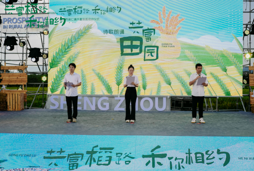崇糧愛(ài)糧,古已有之;共富田園,心潮澎湃。崇仁鎮(zhèn)年輕干部上臺(tái),帶來(lái)了詩(shī)歌朗誦節(jié)目。穿越歷史的飛塵,讓大家一同品味詩(shī)與稻的魅力。