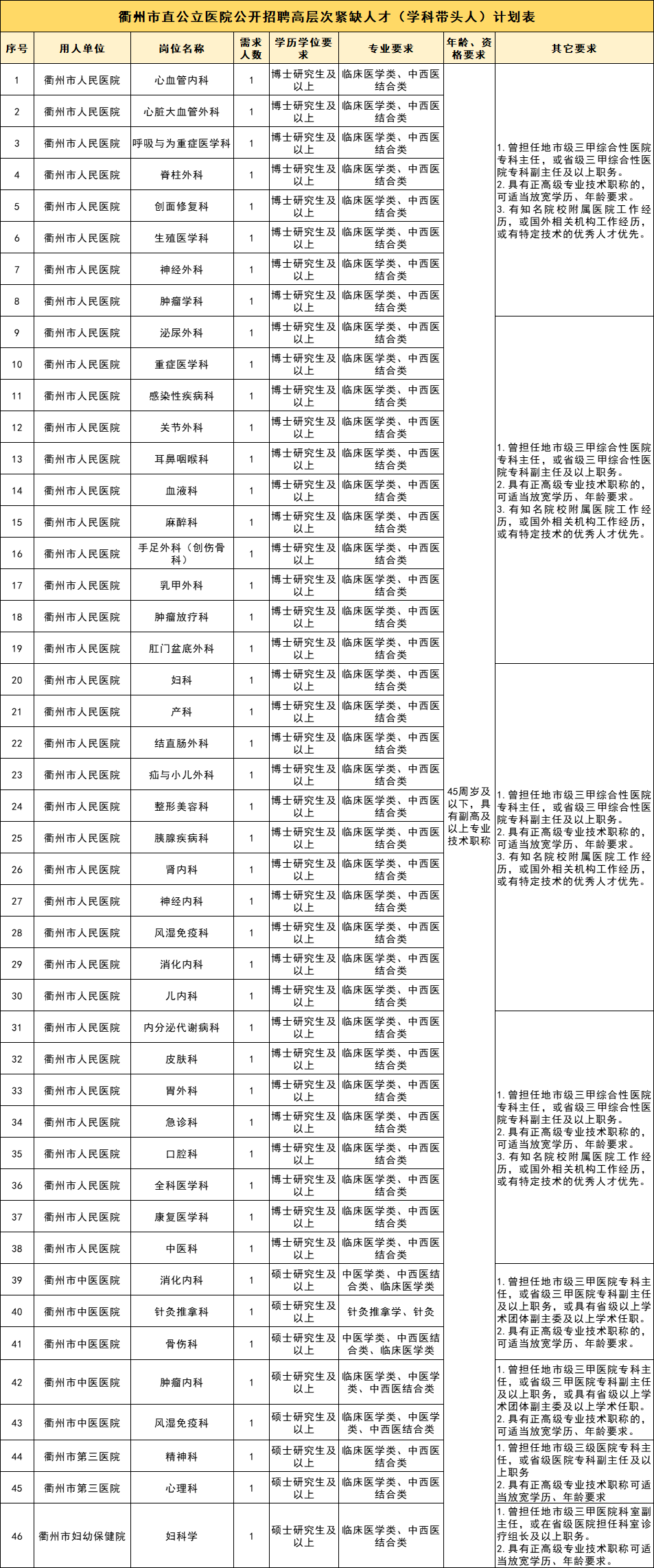 近日,衢州市直公立醫(yī)院發(fā)布公告,面向社會公開招聘高層次緊缺人才(學(xué)科帶頭人)46名,薪資最高300萬!