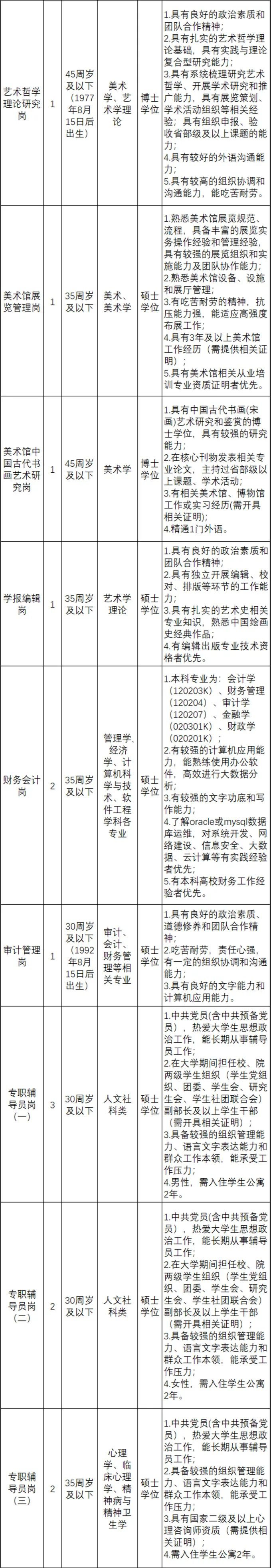 應(yīng)聘人員登錄中國美術(shù)學(xué)院公開招聘網(wǎng)上報(bào)名系統(tǒng)(報(bào)名網(wǎng)址https://rsps.caa.edu.cn/zp/#/home)注冊個(gè)人真實(shí)信息后,選擇應(yīng)聘崗位進(jìn)行報(bào)名,每位應(yīng)聘人員限報(bào)一個(gè)崗位。