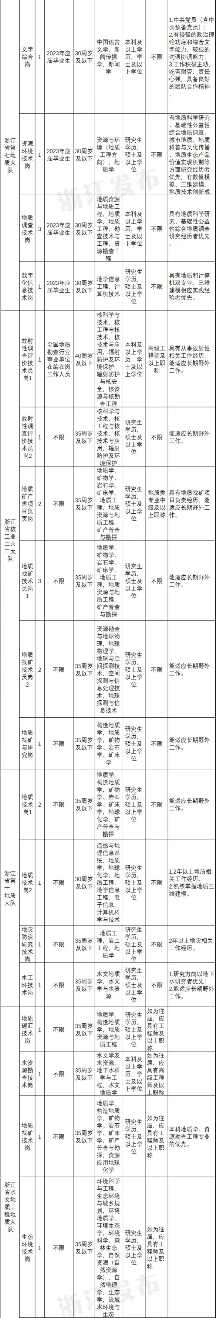 此次招聘的浙江省地質(zhì)院院本級及所屬事業(yè)單位共8家。具體如下: