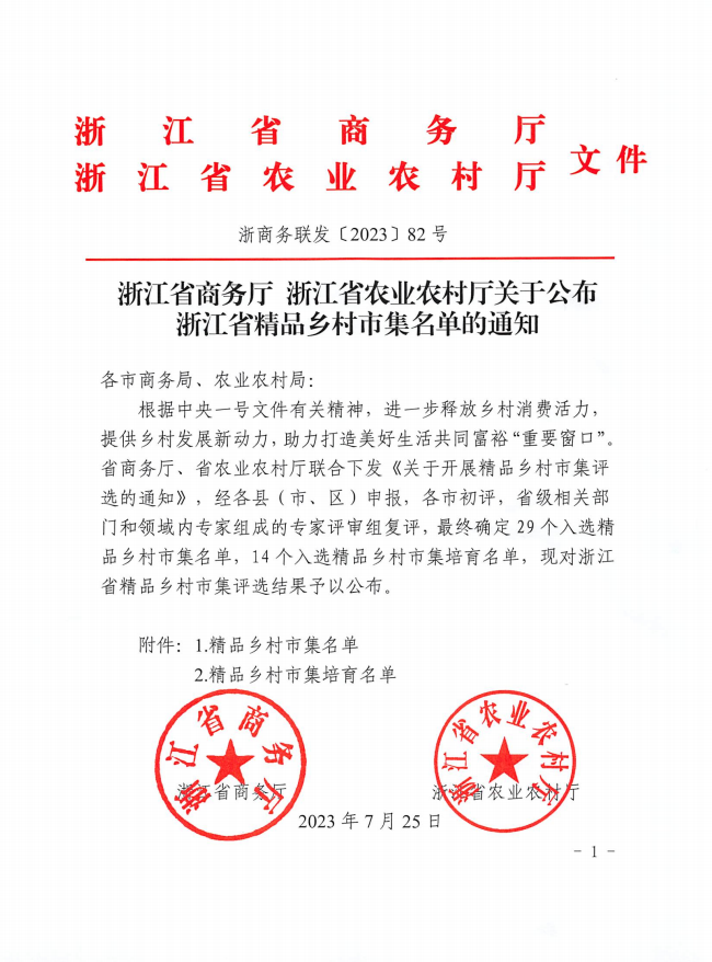 為深入貫徹2023年中央一號(hào)文件“扎實(shí)推進(jìn)宜居宜業(yè)和美鄉(xiāng)村建設(shè)”精神,進(jìn)一步做好消費(fèi)為民、樂(lè)民、富民三篇文章,近期,浙江省商務(wù)廳浙江省農(nóng)業(yè)農(nóng)村廳聯(lián)合開(kāi)展首批精品鄉(xiāng)村市集評(píng)選。