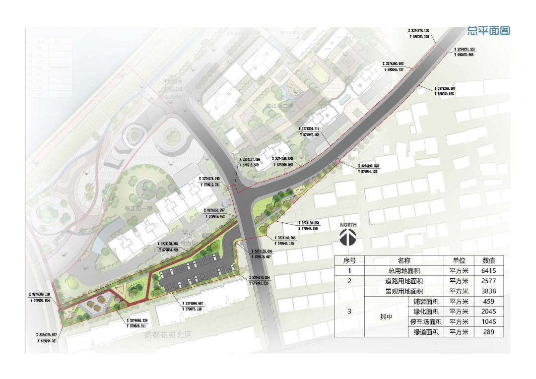 臨江苑南側(cè)配套道路工程及綠地位于官河南路以東,臨江苑在建工程以南,城南環(huán)衛(wèi)所以西,盛都花苑北區(qū)以北,用地面積約6415平方米(折合約9.62畝),路線全長183m。本項(xiàng)目涉及道路面積2577平米、綠化景觀面積3838平米(其中停車場用地1045平方米)。項(xiàng)目主要為臨江苑配套使用,兼具一定的集散交通功能。