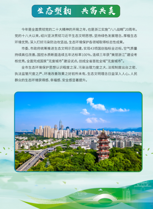 近年來,在全市干部群眾的共同努力下,紹興生態(tài)環(huán)境質量持續(xù)改善,群眾滿意度、獲得感持續(xù)增強。作為紹興的一份子,您對我市生態(tài)環(huán)境工作最有發(fā)言權。