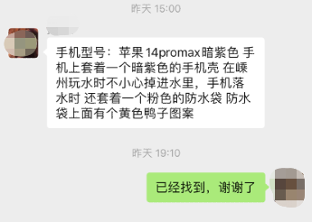 據(jù)了解,該手機價值近萬元,丟失對于李女士來說損失很大。張浙洋第一時間聯(lián)系到漂流景區(qū)負責人,詢問是否有人撿到過李女士的手機送到游客中心,但一番查找后并無收獲,手機也處于關(guān)機狀態(tài),無法打通。