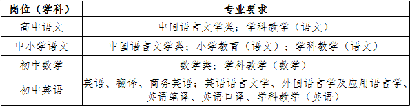 高中語文教師1名、中小學(xué)語文教師 2名、初中數(shù)學(xué)教師1名、初中英語教師1名。