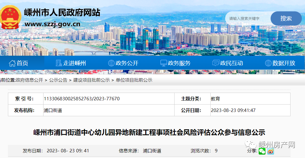為更充分的了解社會(huì)各界對(duì)“嵊州市浦口街道中心幼兒園異地新建工程”的意見建議,根據(jù)《中共浙江省委辦公廳 浙江省人民政府辦公廳關(guān)于印發(fā)< 浙江省重大決策社會(huì)風(fēng)險(xiǎn)評(píng)估實(shí)施辦法>的通知》(浙委辦發(fā)[2019]53 號(hào))及《中共紹興市委辦公室、紹興市人民政府辦公室關(guān)于印發(fā)< 紹興市重大決策社會(huì)風(fēng)險(xiǎn)評(píng)估實(shí)施細(xì)則>的通知》(紹市委辦發(fā)[2020]1號(hào))的要求,對(duì)該項(xiàng)目進(jìn)行社會(huì)風(fēng)險(xiǎn)評(píng)估公示,廣泛征求公眾意見。