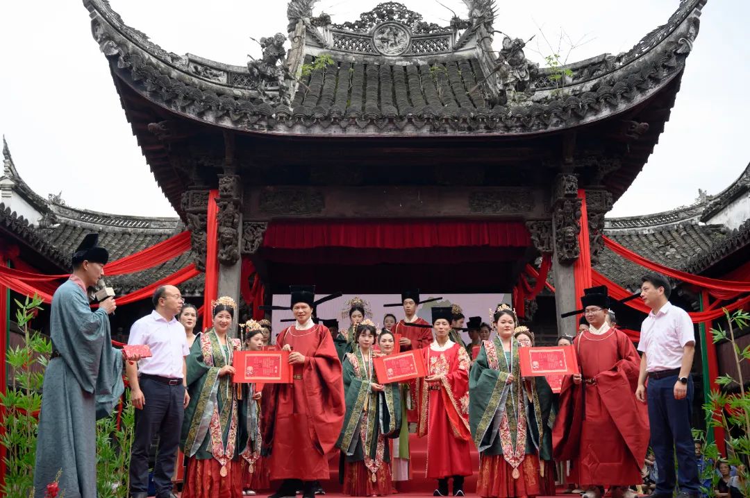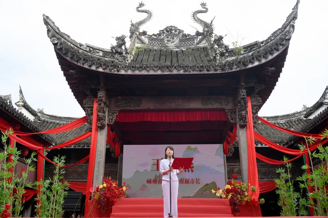 這場(chǎng)集體婚禮在中共嵊州市委宣傳部(文明辦)指導(dǎo)下,由嵊州市民政局、崇仁鎮(zhèn)人民政府主辦,嵊州市總工會(huì)、共青團(tuán)嵊州市委、嵊州市婦聯(lián)、嵊州市婚姻家庭協(xié)會(huì)協(xié)辦,將宋韻美學(xué)與崇仁古鎮(zhèn)非遺文化深度融合,旨在積極倡導(dǎo)“文明向上、適度從簡(jiǎn)、內(nèi)涵豐富、理性高雅”的婚俗新風(fēng),弘揚(yáng)互敬互愛(ài)、責(zé)任擔(dān)當(dāng)?shù)幕橐黾彝ノ幕罅ν七M(jìn)全市婚俗改革。