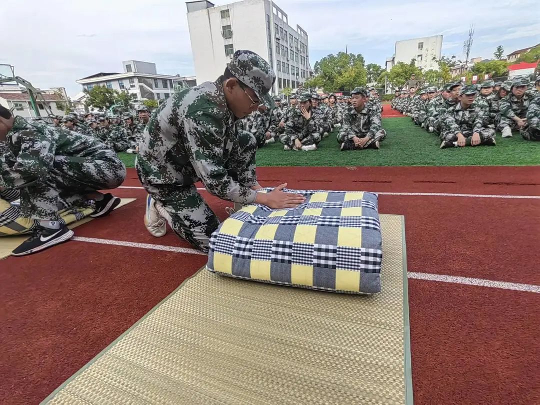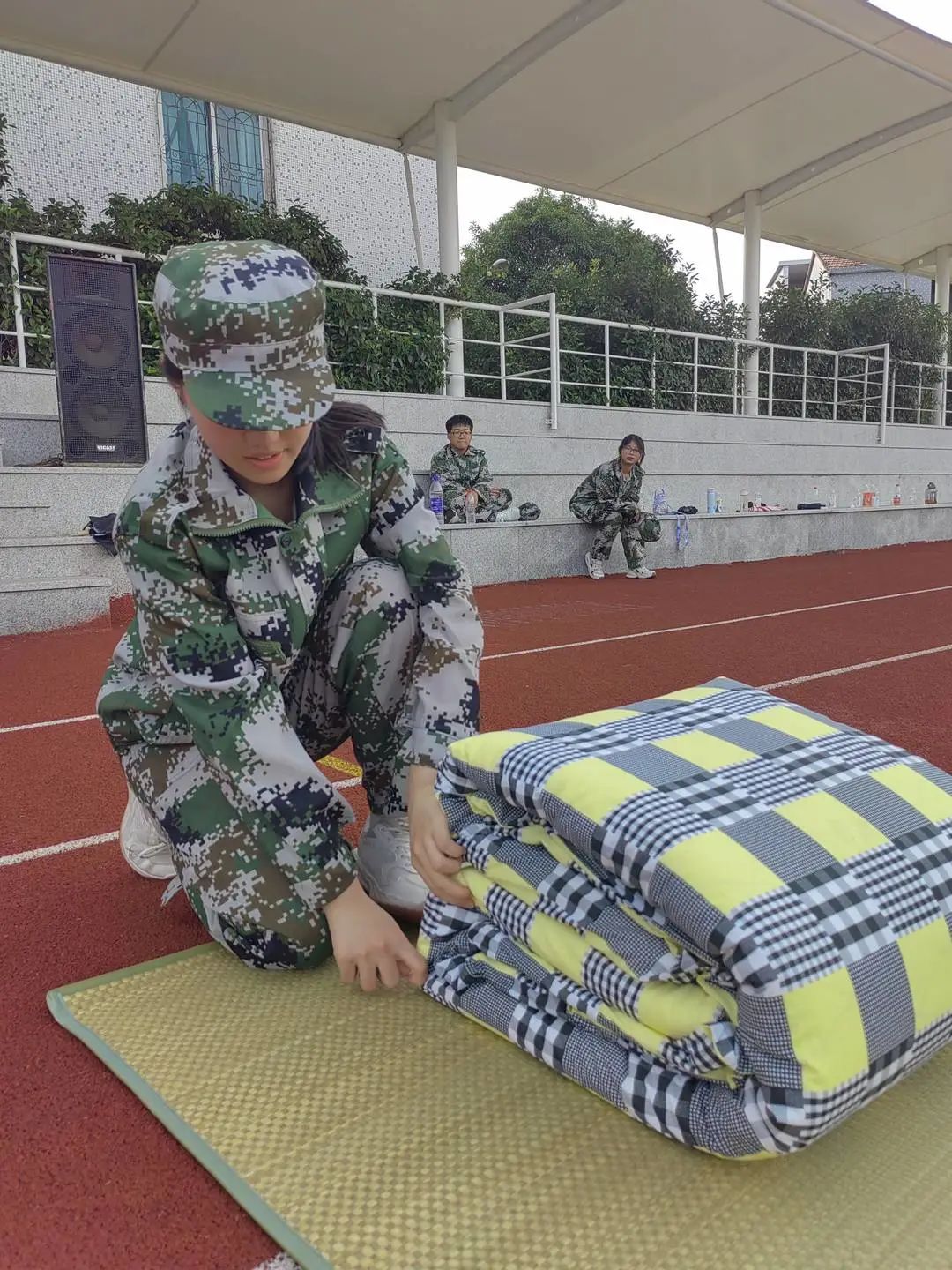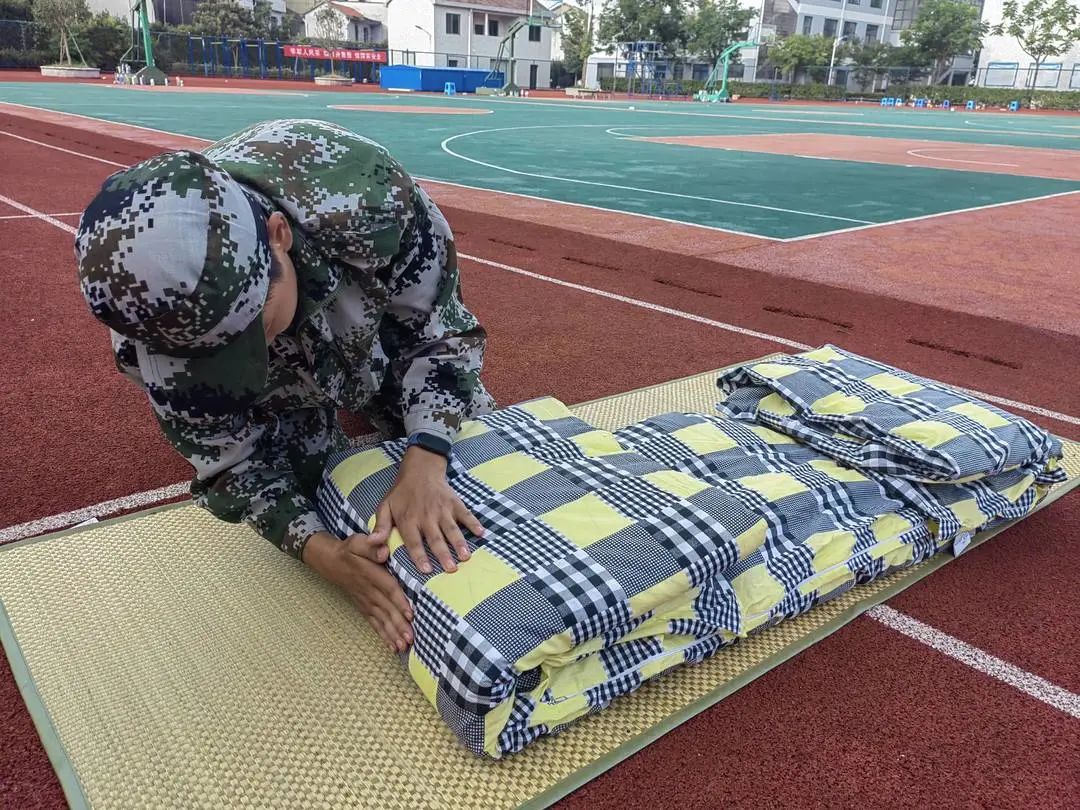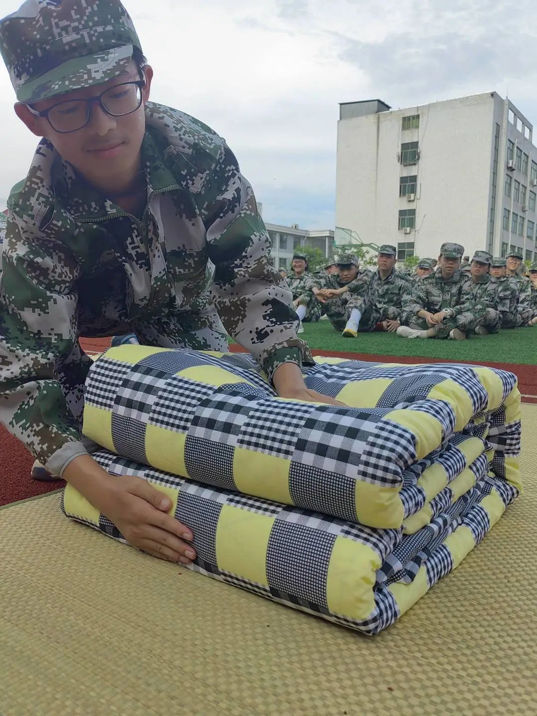 把松軟、支撐性差的一床棉被,變成大方整齊、有棱有角的“豆腐塊兒”,是需要付出許多汗水的。在反復的練習后,同學們一個個熟練的抖動被子,展開、鋪平、折疊、壓平、壓實、疊成形、捏出角,保證被面的平整。只見他們動作流暢,手腳麻利,使被子完成了從“棉被”到“豆腐塊”的華麗轉(zhuǎn)變。