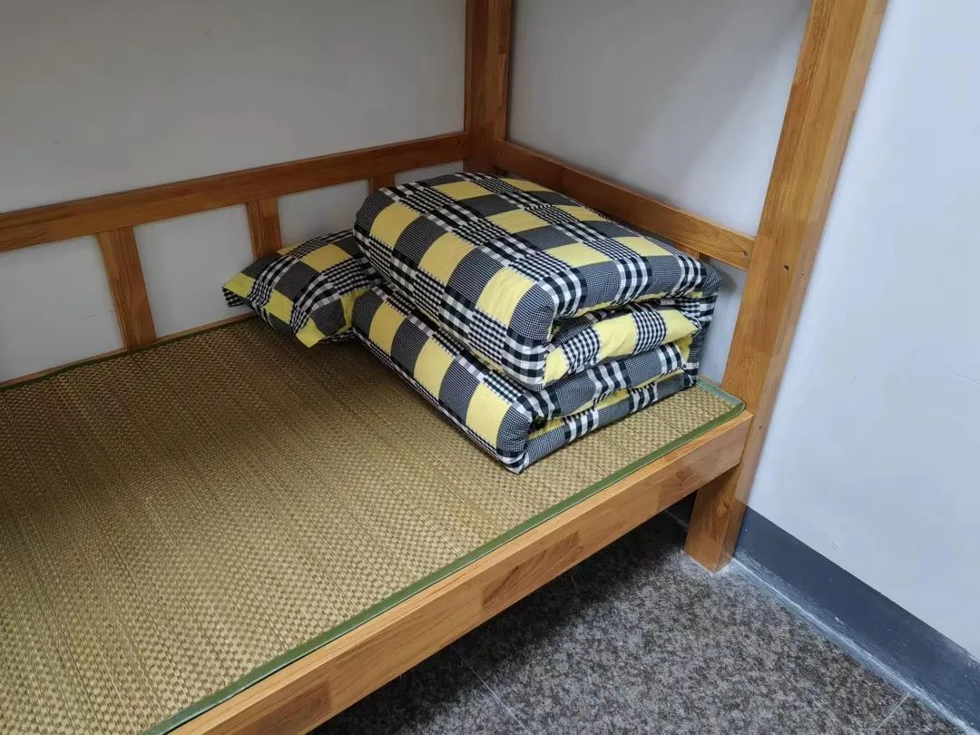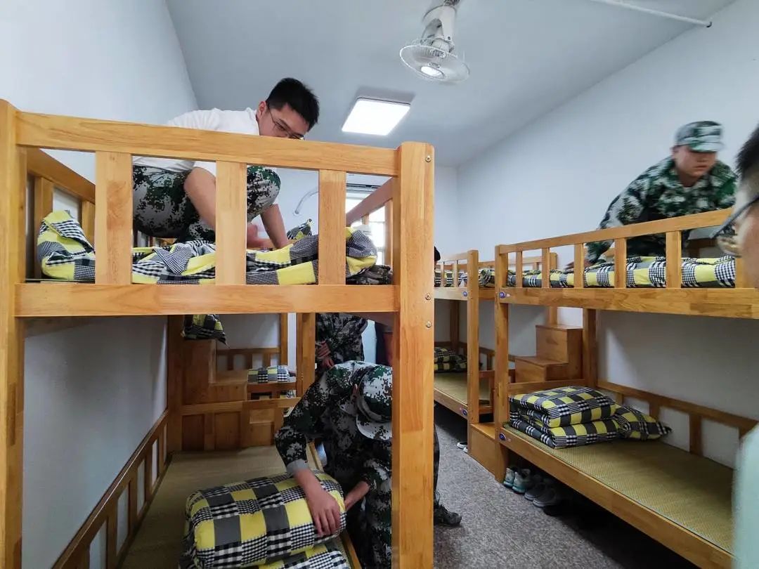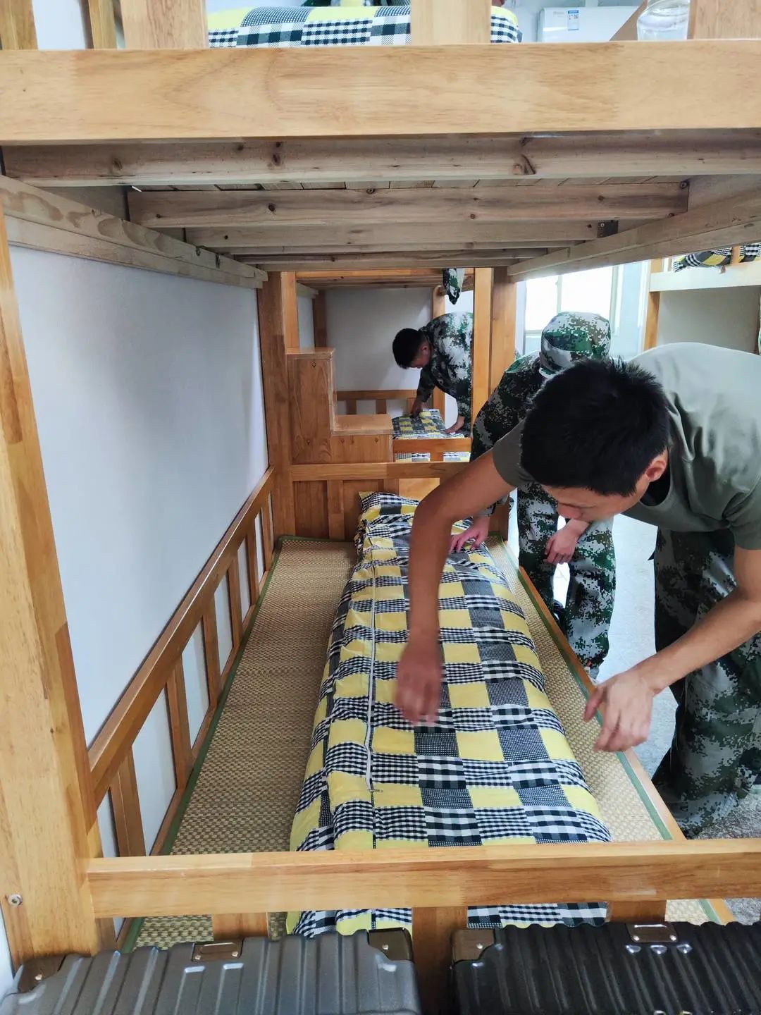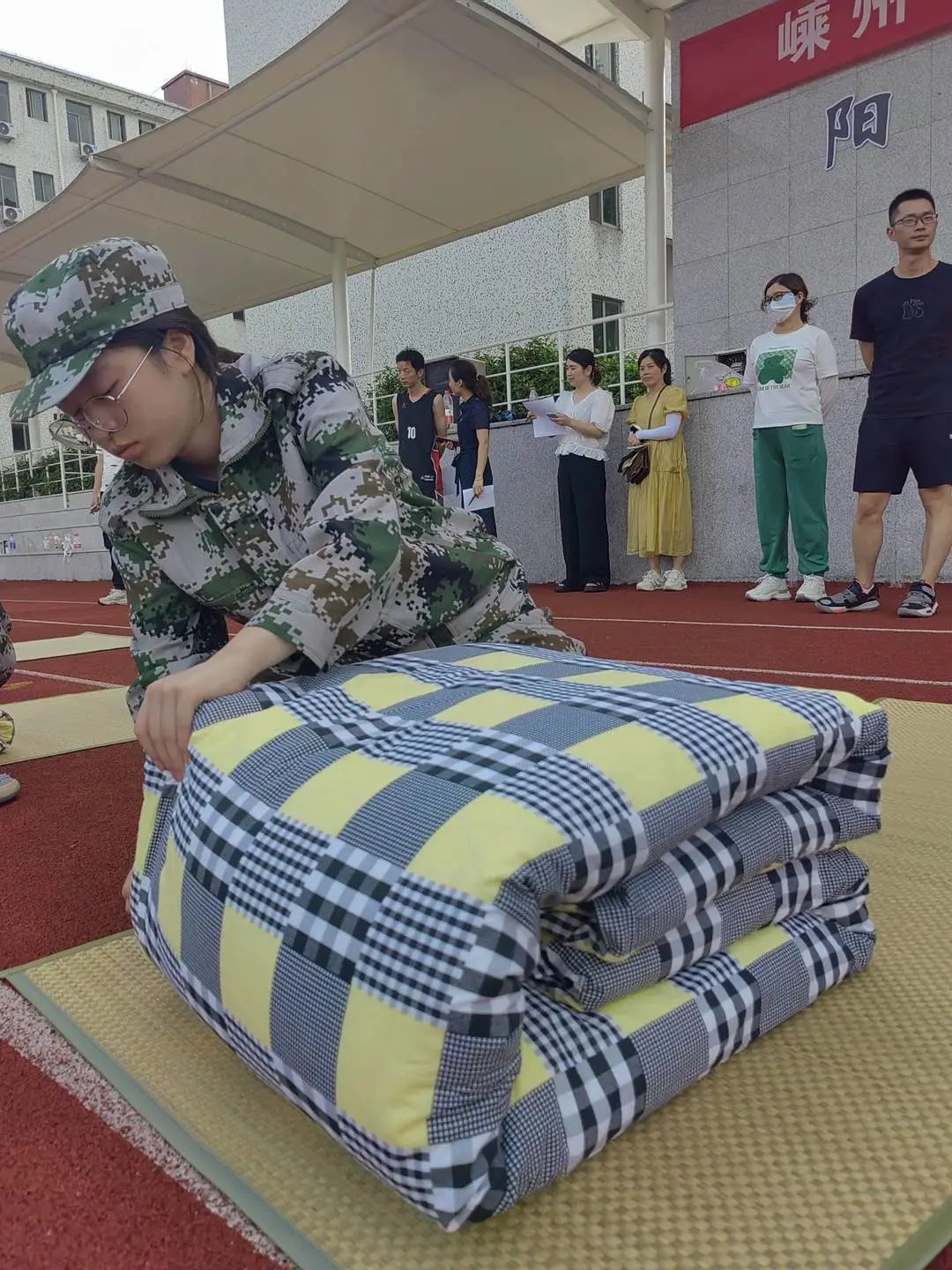 把松軟、支撐性差的一床棉被,變成大方整齊、有棱有角的“豆腐塊兒”,是需要付出許多汗水的。在反復的練習后,同學們一個個熟練的抖動被子,展開、鋪平、折疊、壓平、壓實、疊成形、捏出角,保證被面的平整。只見他們動作流暢,手腳麻利,使被子完成了從“棉被”到“豆腐塊”的華麗轉(zhuǎn)變。