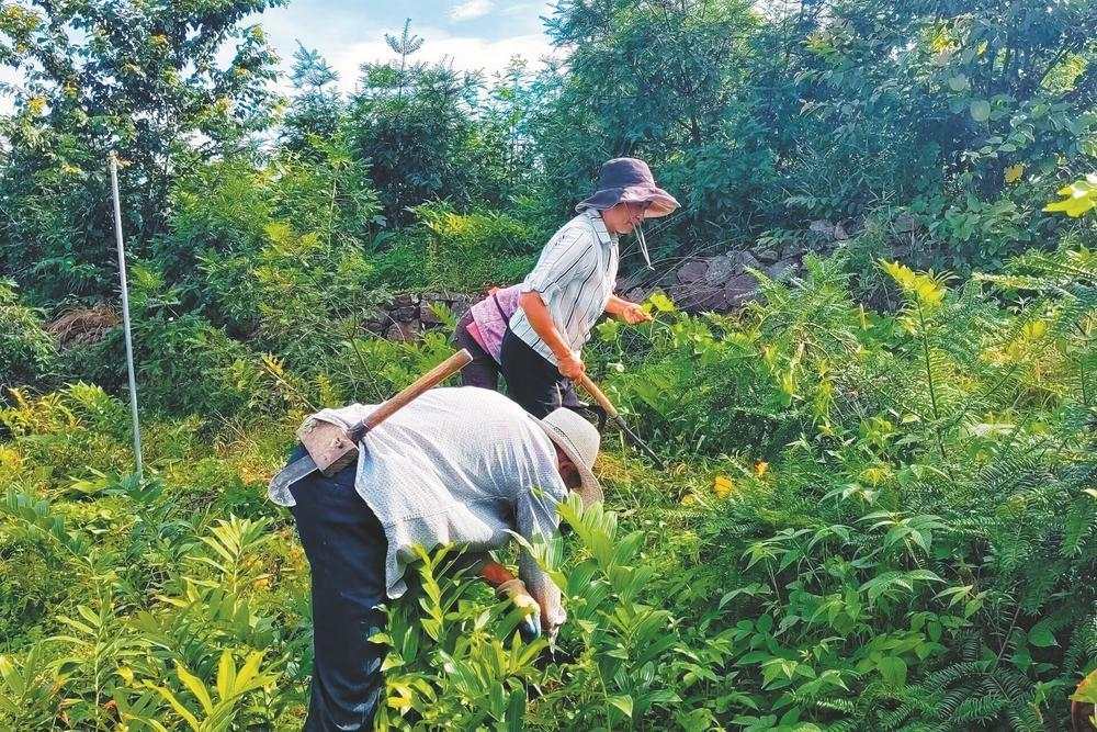 嵊州市谷來鎮(zhèn)王院村想食榧榧農(nóng)場內(nèi),村民正在為榧樹下套種的玉竹除草。