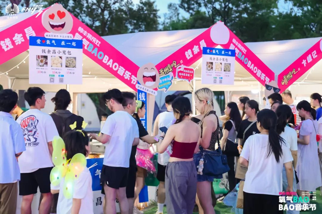 何為“BAOBAO”?其寓意之一正是小籠包。本次氧氣BAOBAO音樂節(jié)上,就隨處可見本地特色美食“小籠包”的元素。借助時下超火的MBE設(shè)計風(fēng)格,通過設(shè)計以小籠包為意象的海報,為每一位關(guān)注嵊州和本次音樂節(jié)的人們帶來強烈視覺沖擊。飽了眼福更要飽口福,在音樂節(jié)現(xiàn)場還有美食市集品牌商家現(xiàn)包現(xiàn)蒸的各種口味小籠包,并設(shè)計BAOBAO挑戰(zhàn)賽,通過互動游戲?qū)ふ易顣浴⒆類鄢?、最快吃的BAOBAO達人。此外,美食市集上還有春餅、年糕、榨面、糯米裹、羊骨頭、雞蛋烤餃等各類嵊州名小吃扎堆,嵊情家味,讓人欲罷不能。