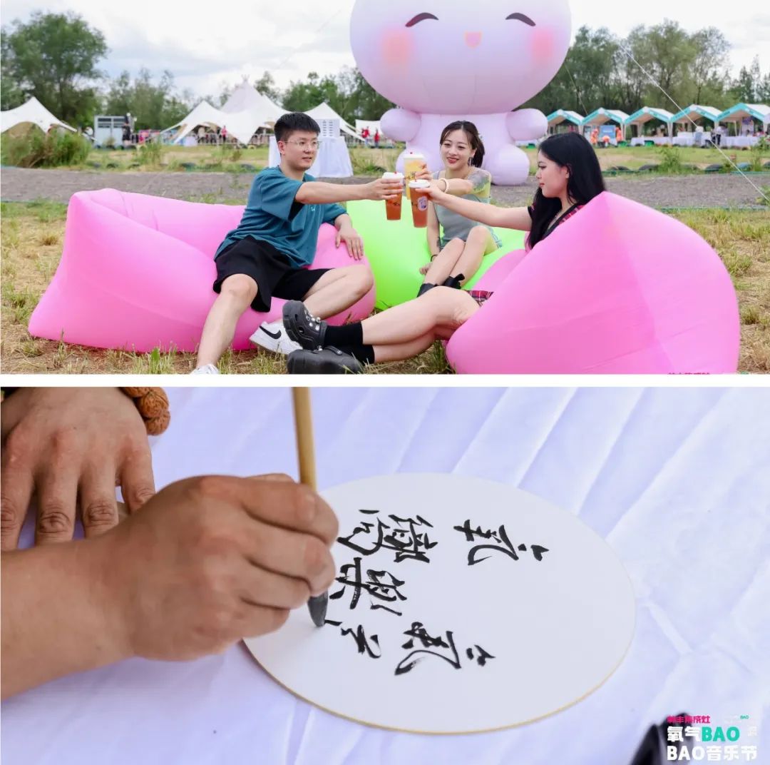在清涼冰工廠區(qū),冰飲、冰果、冰西瓜……各式冷飲冰品趕走“熱浪”。在露營區(qū),打開天幕,躺在舒適的充氣沙發(fā)上,聽著音樂,和志同道合的“蓬”友快意徜徉?,F(xiàn)場還設(shè)置年輕人互動內(nèi)容,比如和“小籠人”——男女模特兒爆炸姿勢合影打卡,朋友圈秀一波;參加水槍大戰(zhàn),共享喜悅,找尋放肆的快樂。好聽、好吃、好玩,讓人沉浸在“過節(jié)”的熱鬧氛圍中。