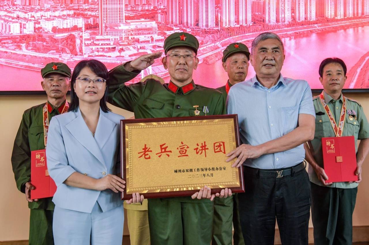 王霞燕、王生燦為“老兵宣講團(tuán)”授牌