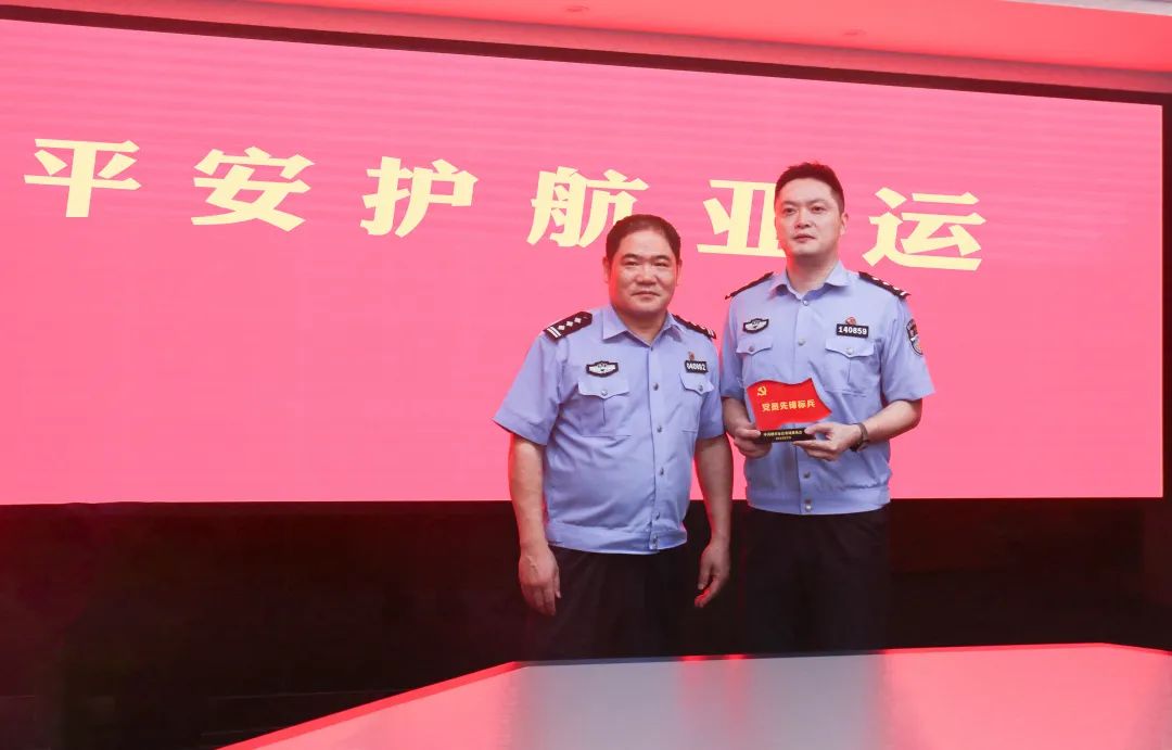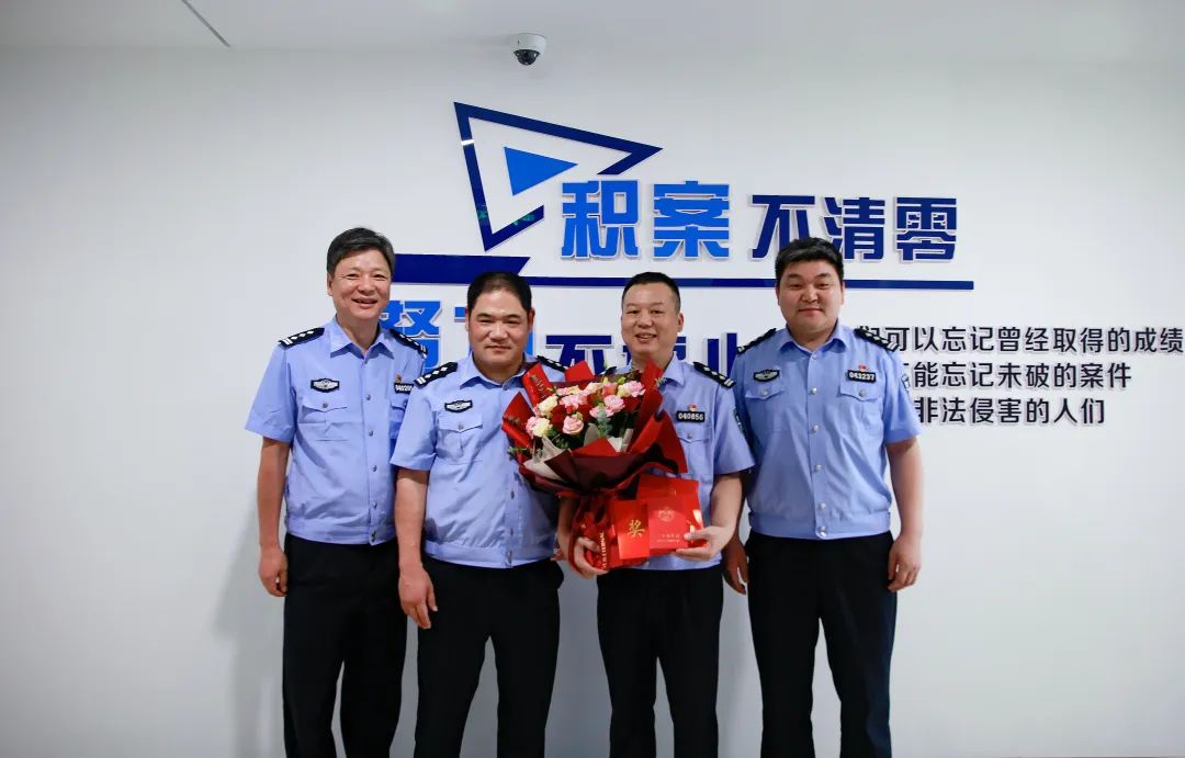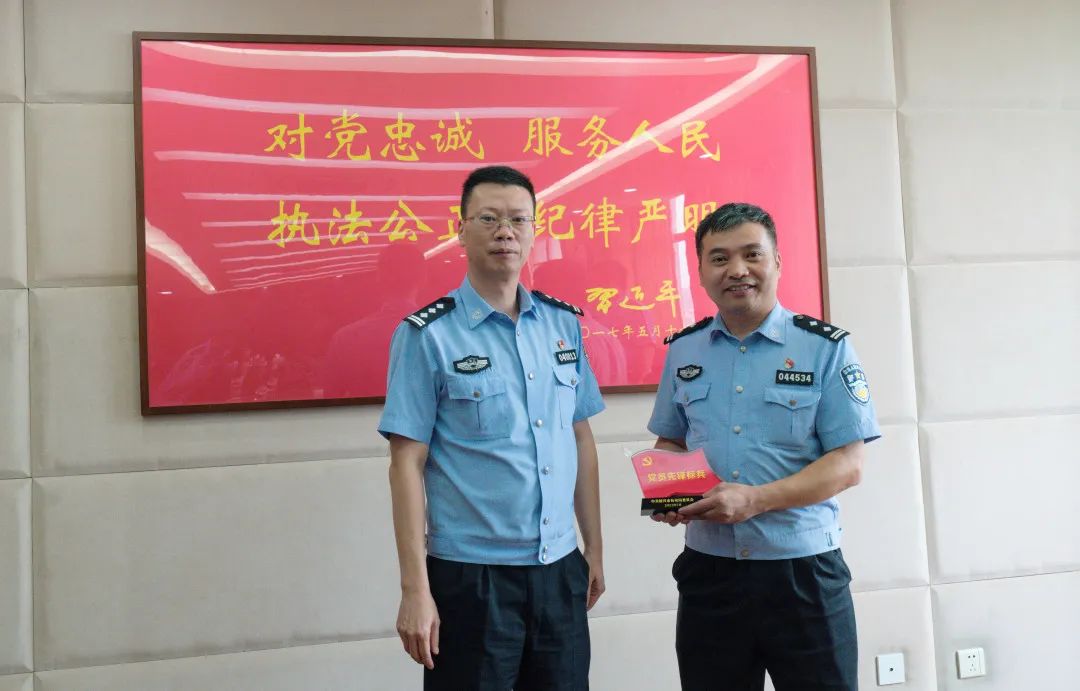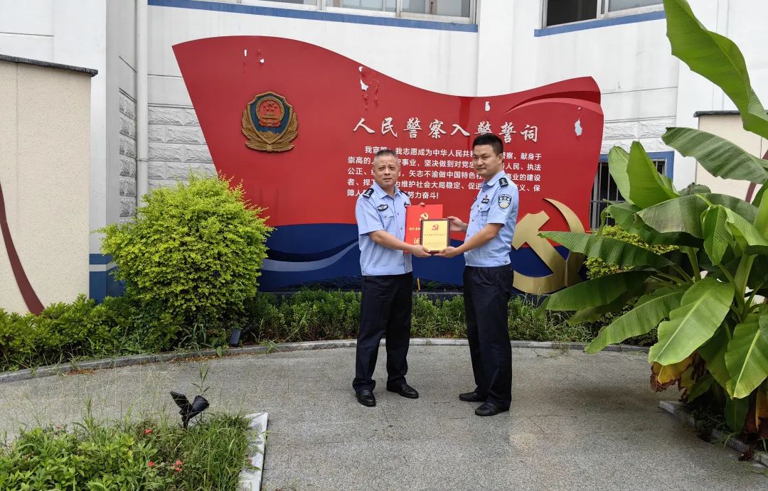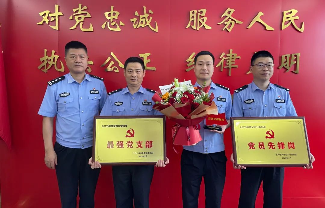 市局黨委委員周永明為榮獲全市公安機關最強黨支部的市局情指行合成作戰(zhàn)中心黨總支情報指揮黨支部,榮獲個人嘉獎的市局情報指揮中心綜合指揮大隊大隊長盛佐鈞等集體和個人送獎。