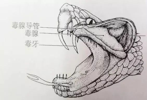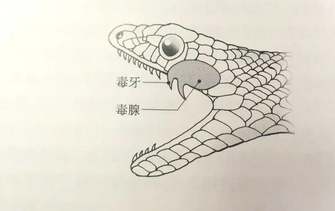 蛇的毒牙可以長在上頜前端,如眼鏡蛇科、蝰科和海蛇科;也可長在上頜后方,如游蛇科。