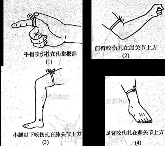 4、用繩子、鞋帶、止血帶等在傷口的近心端綁扎一下,不要綁得過緊,而且每半個小時要松一下重新綁,防止組織缺少血液流通而壞死。