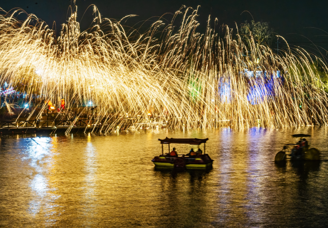 在啟動儀式上,舉行了文旅產(chǎn)品推薦會,圍繞文化旅游、美宿、美食等進行了專場推介,并邀請了網(wǎng)絡達人對文化旅游體驗進行了分享。越劇小鎮(zhèn)還與相關單位進行了項目簽約。本次活動,越劇小鎮(zhèn)進一步迎合大眾需求,再次創(chuàng)新,將“國風”和“越劇”進行了結合,宋韻舞蹈、樂隊駐唱、越劇NPC游園互動、十二花神巡游打卡、越劇大戲等活動集合上演,形成了一場沉浸式的音樂會。此外,煙花秀、打鐵花、美食集市等形式各樣的活動為游客帶來了可看、可聽、可互動、可消費的綜合式消費體驗。
