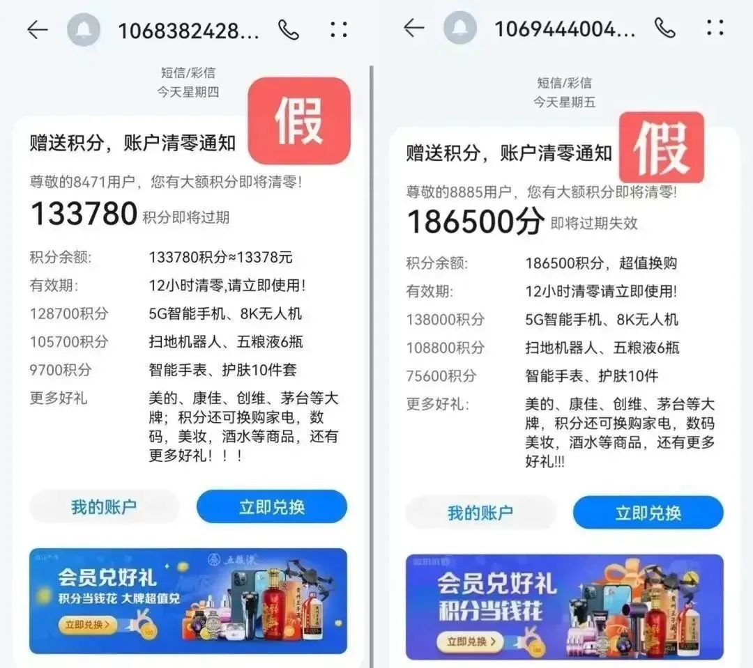 前段時間,楊女士收到一條“積分清零”短信,稱楊女士積累的186500分即將過期清零,避免積分失效,可以點擊鏈接限時兌換禮品。