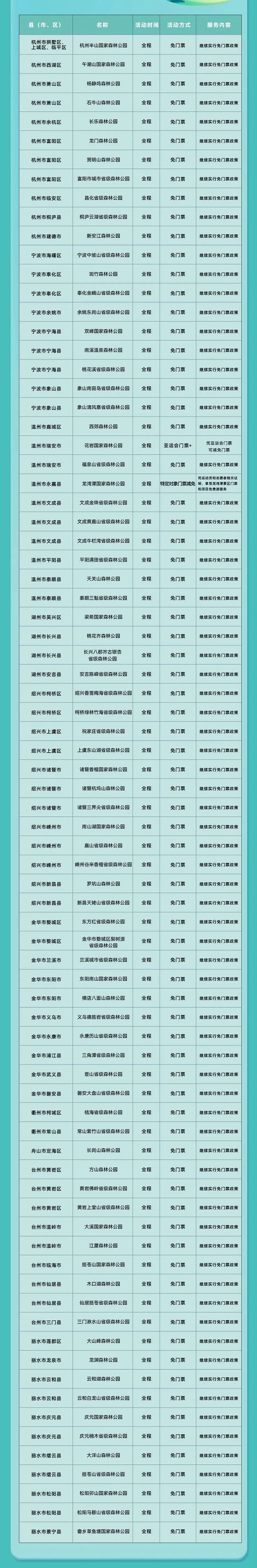 活動內(nèi)容包括“走進(jìn)浙里名山,飽覽浙里風(fēng)景”“走進(jìn)浙片濕地,徜徉江山水鄉(xiāng)”“走進(jìn)國有林場,探尋最美森林”等,將面向社會提供免門票及門票減免、“門票+”等服務(wù)?;顒觾?nèi)容及參與方式↓↓