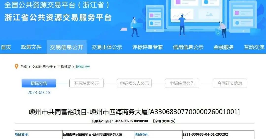 據悉,嵊州市共同富裕項目-嵊州市四海商務大廈已經由紹興市·嵊州市備案。