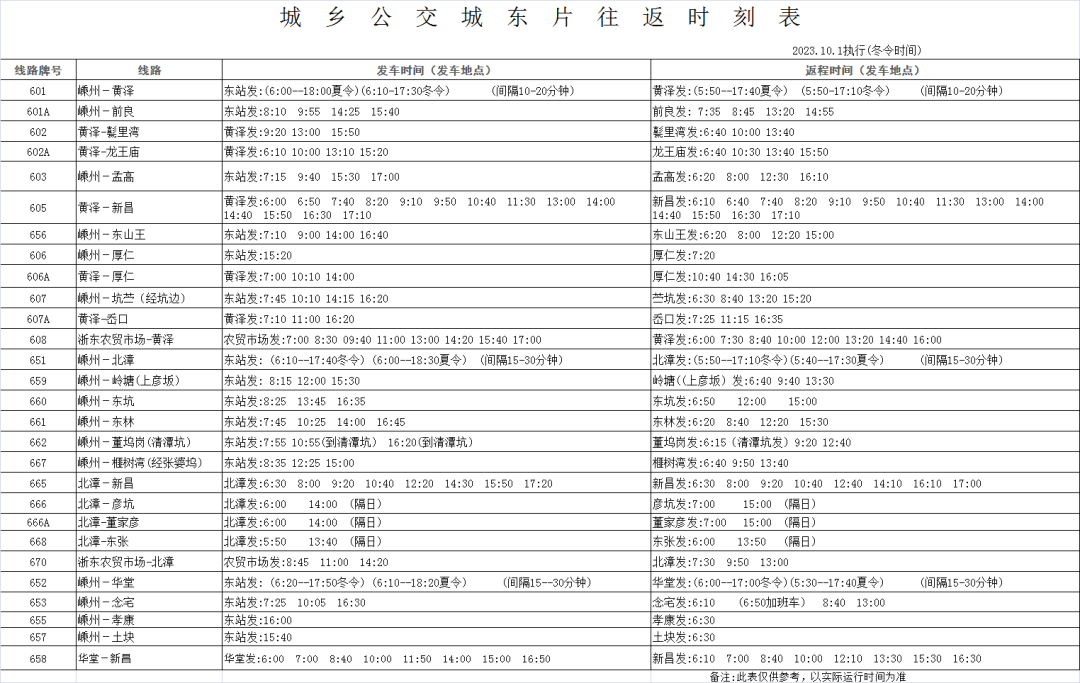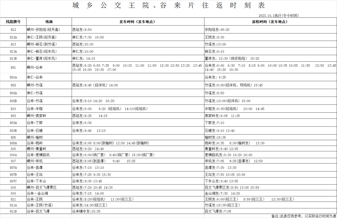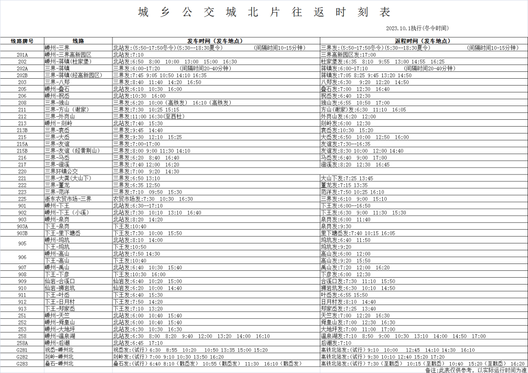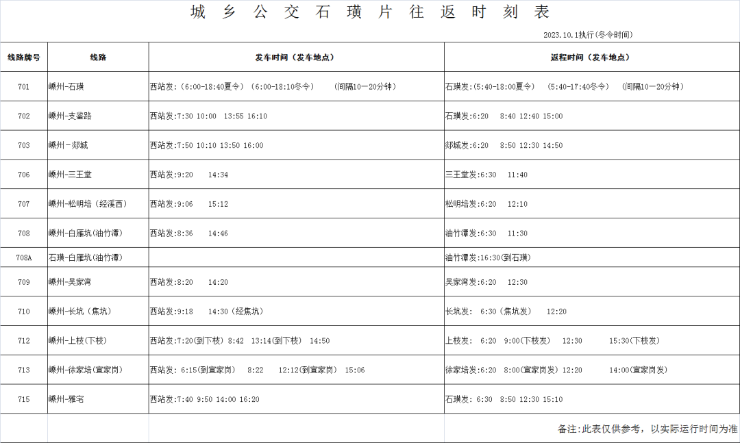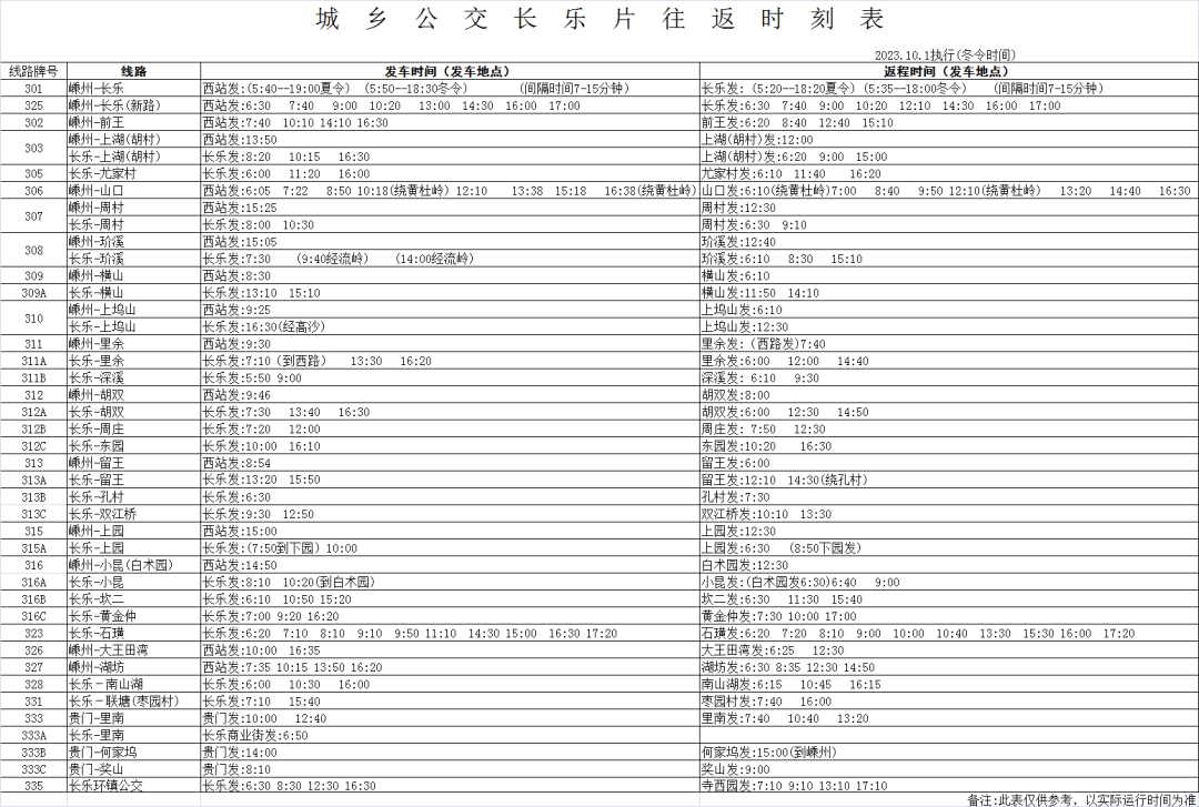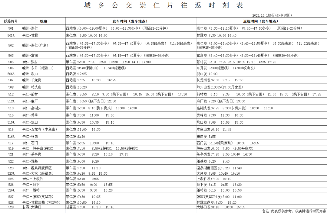 備注:此表僅供參考,以實際運行時間為準(zhǔn)。