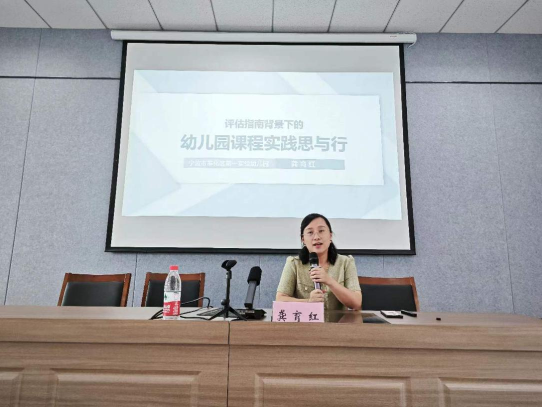 22日下午寧波市學(xué)科骨干、奉化區(qū)名師、副高級教師龔育紅老師為學(xué)員們進(jìn)行了《評估指南背景下幼兒園課程實(shí)踐思與行》講座。龔老師從“課程變革中的兒童本位”、“課程建設(shè)中的兒童立場”、“課程實(shí)施中的兒童力量”三個角度入手,通過自身教學(xué)過程中的豐富案例,向?qū)W員們展示了如何在教學(xué)過程中真正貫徹以兒童為本位的課程時間理念,啟發(fā)學(xué)員們在實(shí)施課程計(jì)劃的過程中,充分發(fā)現(xiàn)幼兒感興趣的事物和偶發(fā)事件中所隱含的教育價值。