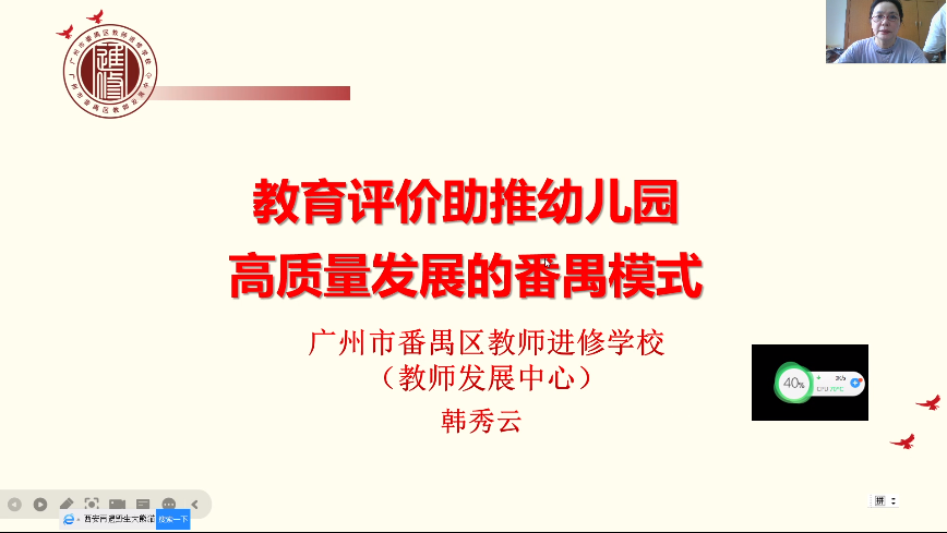 23日下午,中國教育裝備協(xié)會幼教分會委員、學(xué)術(shù)專委韓秀云老師也在線上為學(xué)員們作了《教育評價助推幼兒園高質(zhì)量發(fā)展的番禺模式》主題講座, 韓老師毫無保留的分享了番禺區(qū)的辦園經(jīng)驗(yàn):幼兒園應(yīng)建立常態(tài)化的自評機(jī)制,明確自評路徑、主體、方法等,依據(jù)幼兒園工作的實(shí)際情況,分階段、分目標(biāo)地促進(jìn)保教質(zhì)量的提升。為此需要學(xué)習(xí)《指標(biāo)》中的重點(diǎn)內(nèi)容、關(guān)鍵指標(biāo)和考察要點(diǎn),理解這些指標(biāo)深含的價值導(dǎo)向,深入剖析這些指標(biāo)“針對的是目前存在的什么問題”,在深入理解指標(biāo)根本價值取向的基礎(chǔ)上有效地展開自評,確保自評對自身保教行為的積極引導(dǎo)作用。