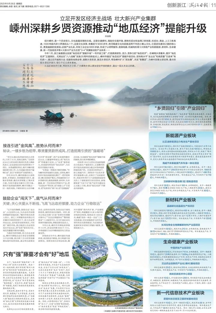 嵊州市錨定“地瓜經(jīng)濟”提能升級目標,堅持高水平“走出去”和高質(zhì)量“引進來”有機統(tǒng)一,通過召開越商大會、組建各地商會等,凝聚鄉(xiāng)賢資源,激活鄉(xiāng)賢經(jīng)濟,幫助嵊州擴大“朋友圈”、充實“智囊團”,為嵊州發(fā)展出謀劃策,重點挖掘鄉(xiāng)賢經(jīng)濟潛力,吸引千億元資本落地。9月28日,浙江日報對此進行專版報道。