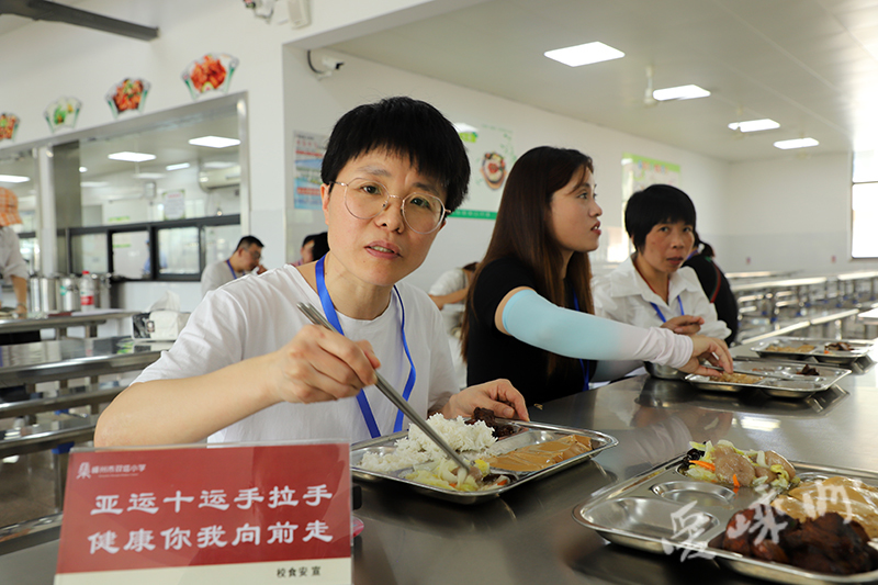 周葉也是剛剛被聘任的一名校園食品安全監(jiān)督員,她一邊體驗(yàn)學(xué)生用餐一邊說(shuō):“剛才仔細(xì)看了雙塔小學(xué)食堂師傅的操作,覺(jué)得食品加工的各個(gè)環(huán)節(jié)很規(guī)范;現(xiàn)在又體驗(yàn)了學(xué)生用餐,我感覺(jué)品種、口味,以及營(yíng)養(yǎng)配比都很好,很滿意!”