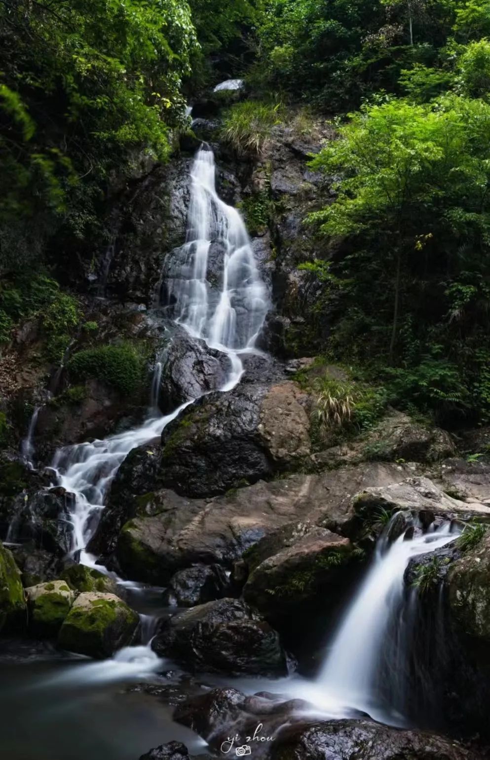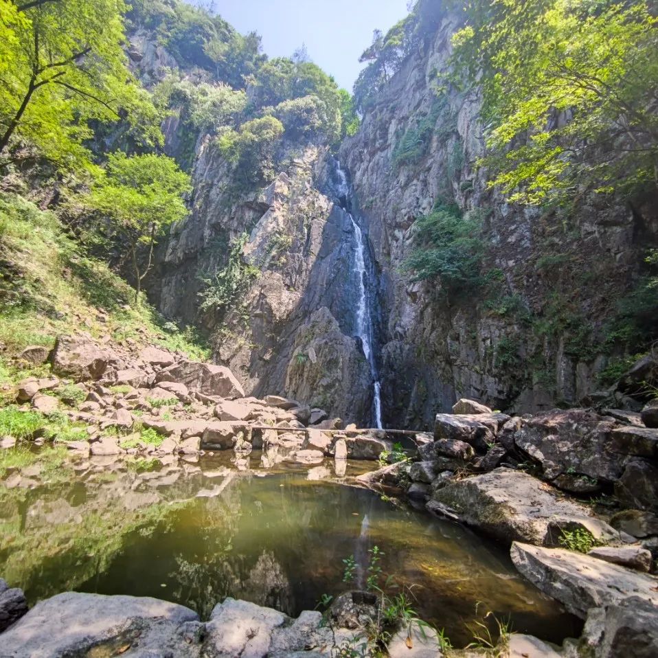 驅(qū)車而行,清新的風(fēng)從臉頰拂過。未觀水色,先聞水聲,多生些好奇。銀河從高處傾瀉而下,濺起無數(shù)晶瑩的水珠,形成無窮變化的小潭。移步換景,穿越山林,百丈瀑、戲珠瀑、鴛鴦瀑、五疊泉、燕尾瀑、一線瀑……以名觀水,以水對名,拾或山野之趣。
