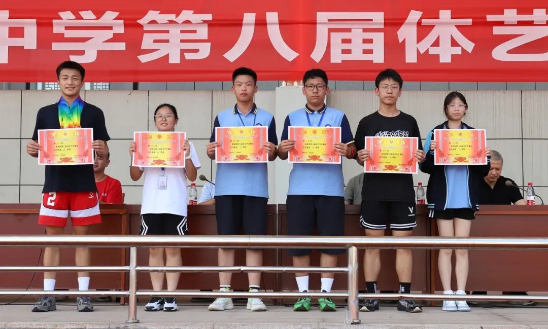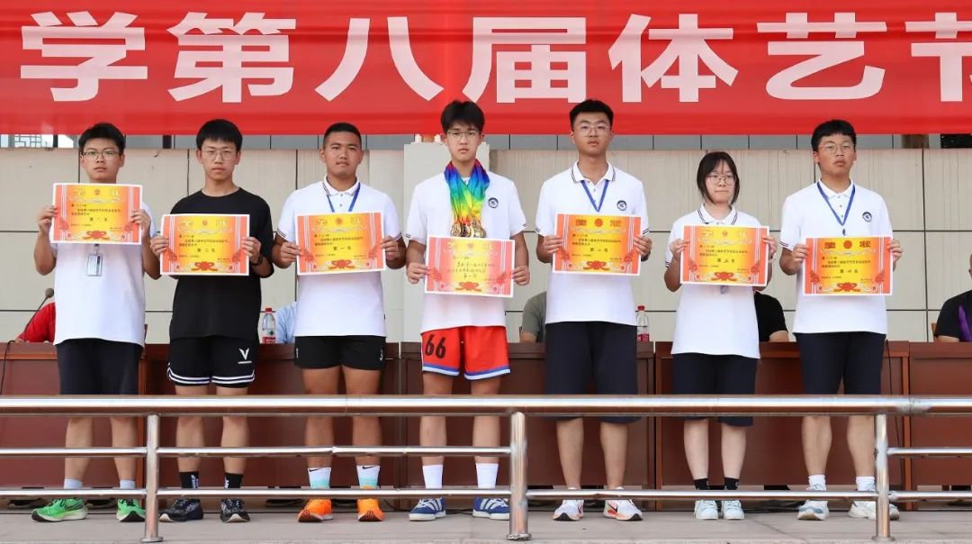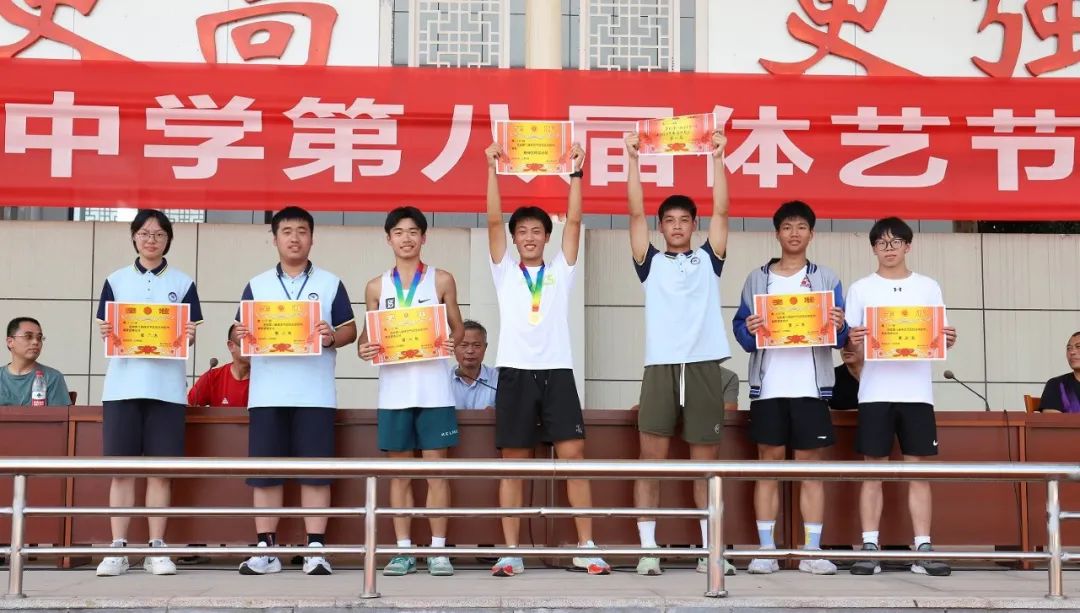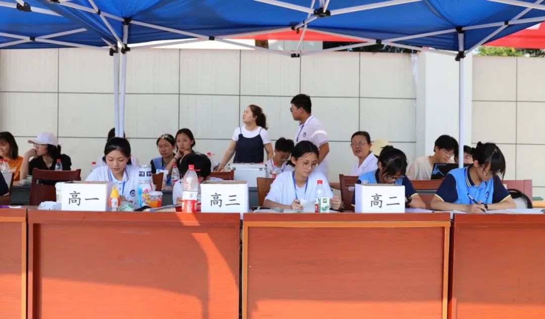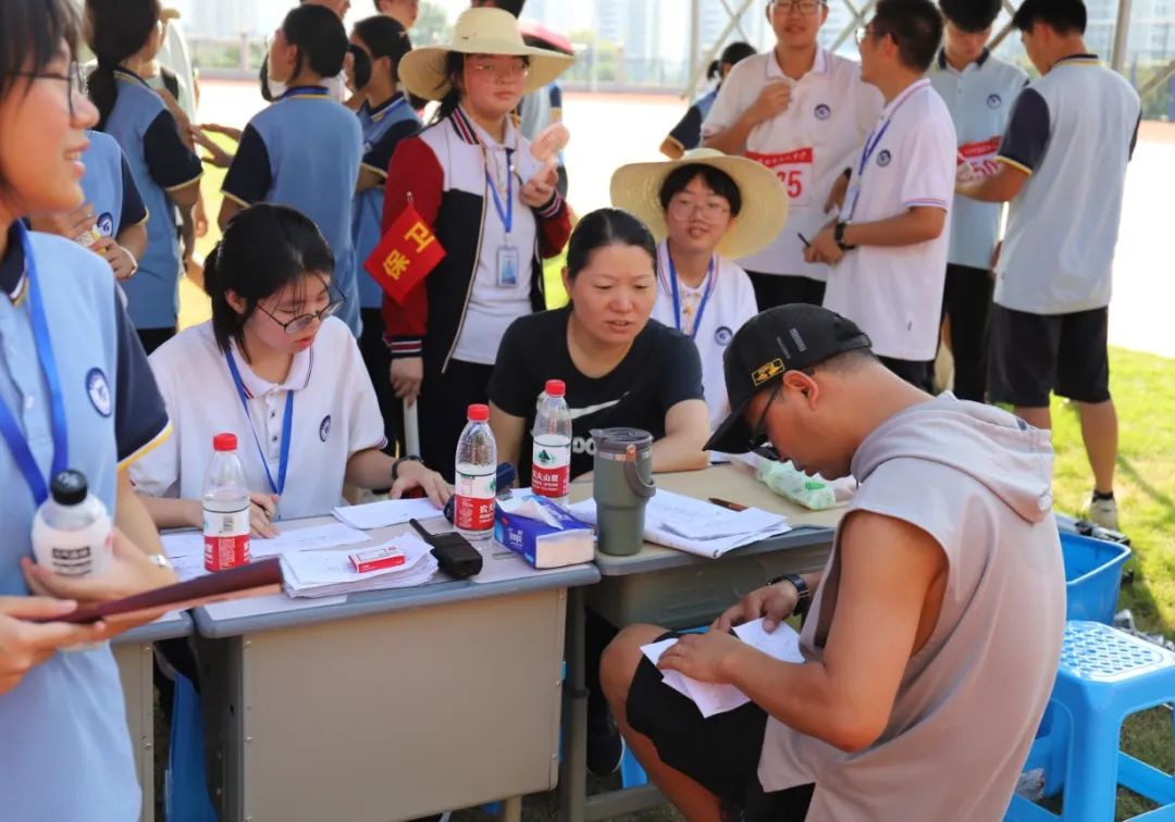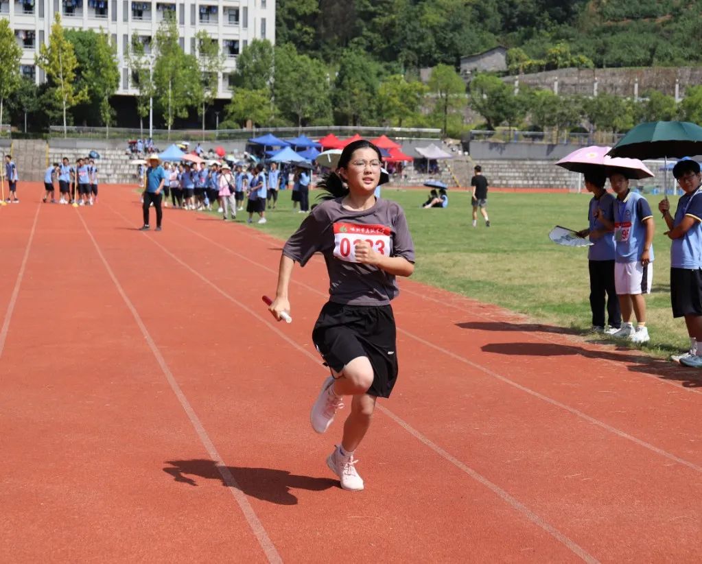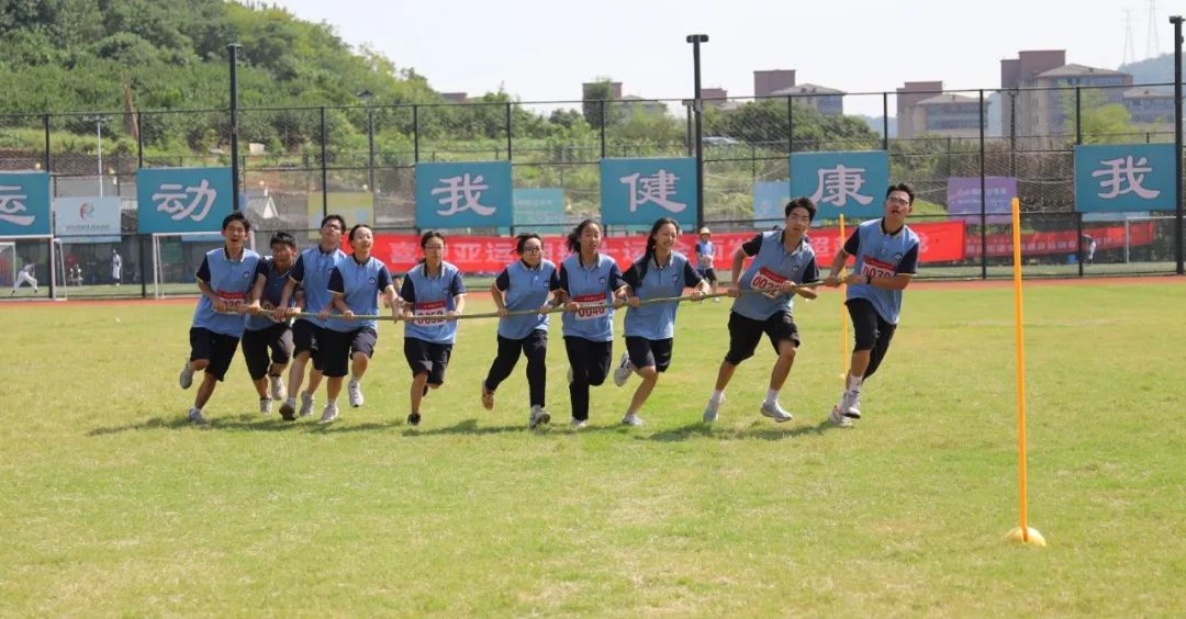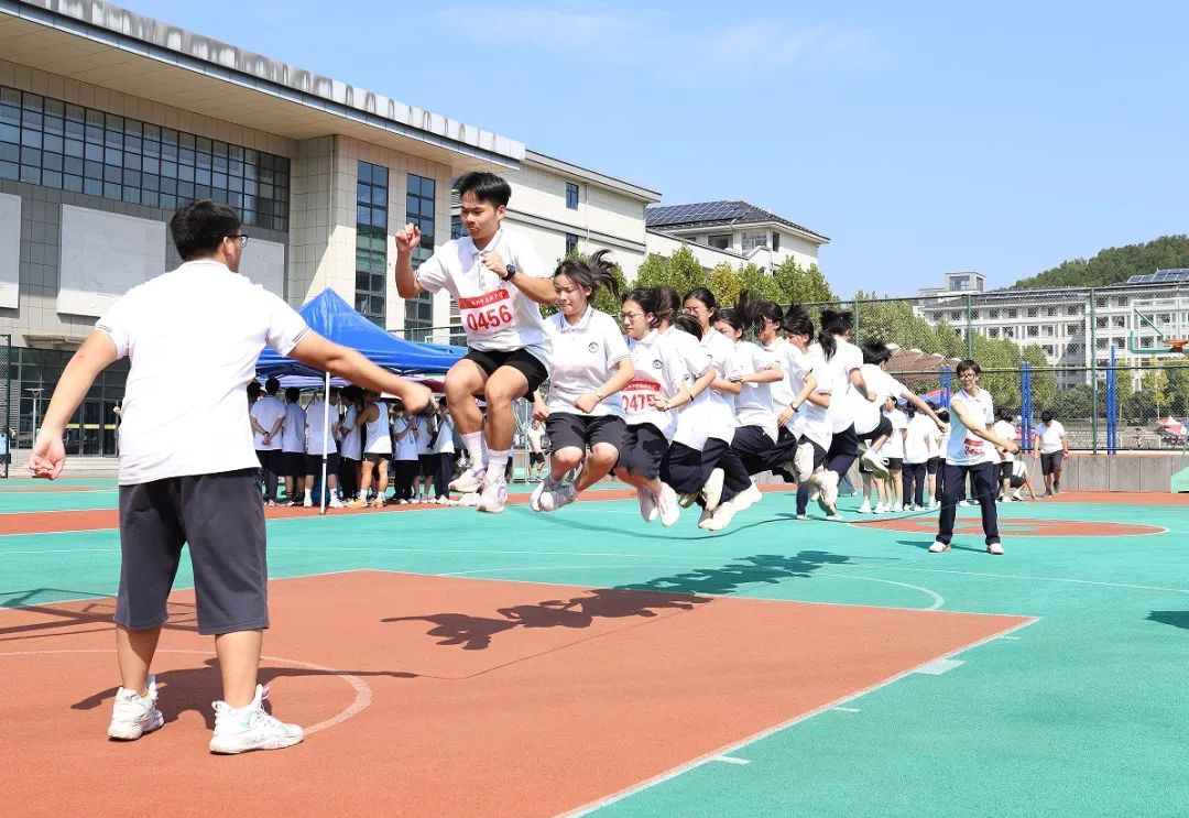 組委會(huì)精心籌劃,組織得力;裁判員認(rèn)真履職、公正裁判;學(xué)生志愿者整理器械、往來(lái)繁忙;廣播員播報(bào)及時(shí)、情緒高漲;醫(yī)護(hù)人員默默守護(hù),駐守在旁;后勤人員準(zhǔn)備充分,保障有方;觀眾們振臂高呼,搖旗吶喊……無(wú)數(shù)人的努力共同繪就了嵊高的秋日浪漫。