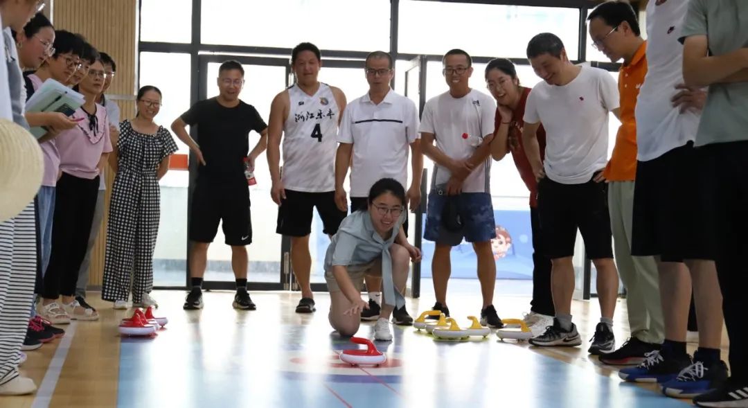 講臺(tái)上,他們是教書(shū)育人的園丁,放下粉筆他們摩拳擦掌,身姿矯??!同心鼓、旋風(fēng)跑、跳長(zhǎng)繩,旱地冰壺、一分鐘投籃……無(wú)畏挑戰(zhàn),向陽(yáng)而生,每個(gè)人都閃閃發(fā)光,盡情享受體育的快樂(lè)。