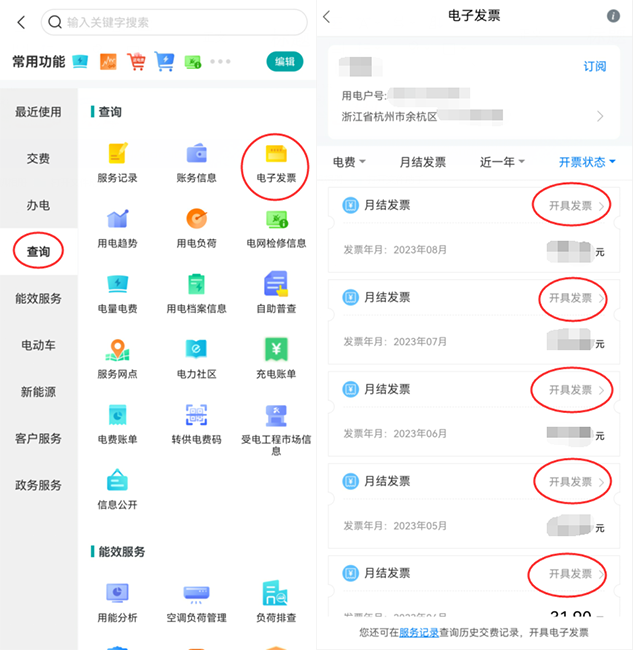 網(wǎng)上國(guó)網(wǎng)App首頁(yè)點(diǎn)擊【更多】→【查詢】→【電子發(fā)票】,完成戶主認(rèn)證后,就可以查詢發(fā)票信息、開具發(fā)票啦!