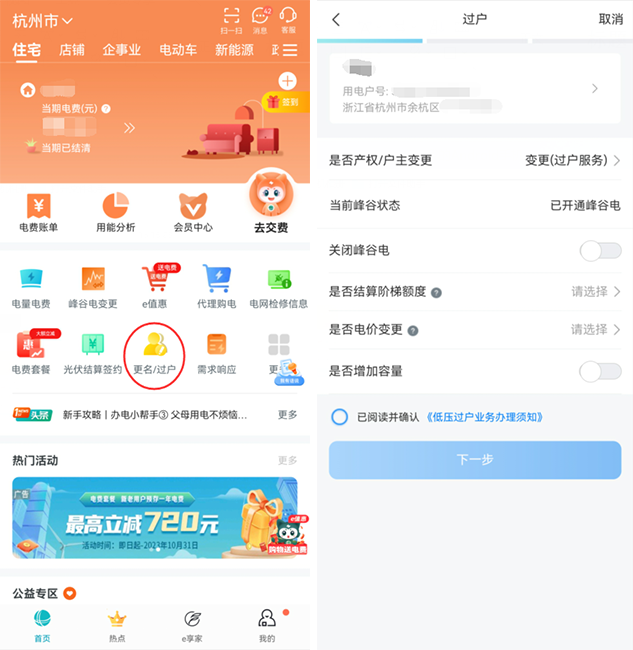 網(wǎng)上國(guó)網(wǎng)App首頁(yè)點(diǎn)擊【更名/過(guò)戶】,選擇【過(guò)戶】,點(diǎn)擊【開始辦理】。選擇變更(過(guò)戶服務(wù))進(jìn)入過(guò)戶申請(qǐng)頁(yè)面,填寫相關(guān)資料,等待供電公司工作人員聯(lián)系即可。