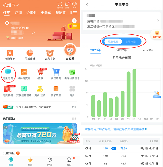 想看自家的用電量或電費(fèi)使用情況,可以在網(wǎng)上國(guó)網(wǎng)App首頁(yè)點(diǎn)擊【電量電費(fèi)】,再點(diǎn)擊“月度電費(fèi)”“日用電量”,就能看到近30天內(nèi)每天的用電量及月度用電情況了。
