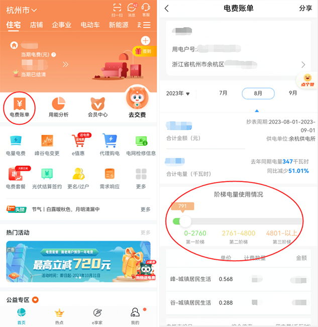 你家的用電量現(xiàn)在處于哪一階梯呢?網(wǎng)上國(guó)網(wǎng)App首頁(yè)點(diǎn)擊【電費(fèi)賬單】,查一查就知道咯。