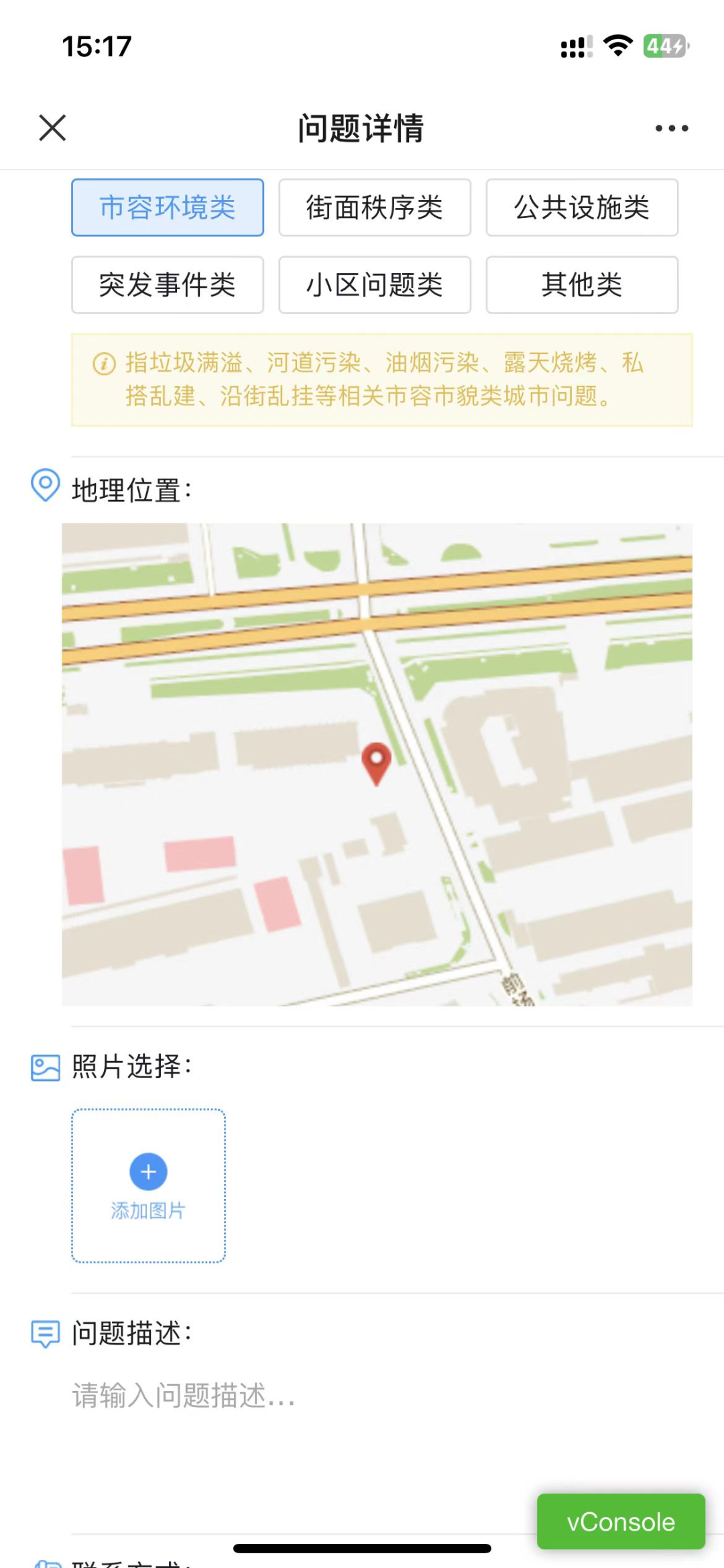 <地理位置>:?jiǎn)栴}發(fā)生所在地(手機(jī)會(huì)自動(dòng)獲取定位,若定位不準(zhǔn),可以手動(dòng)調(diào)節(jié))。