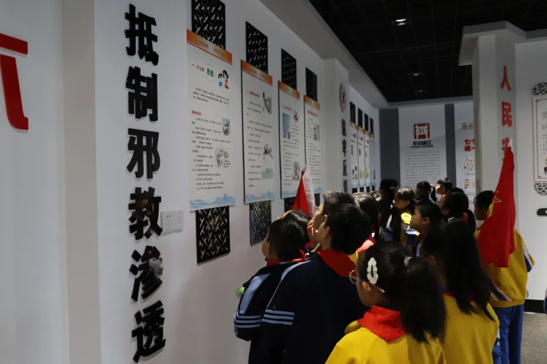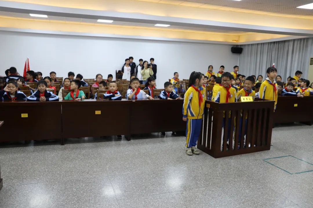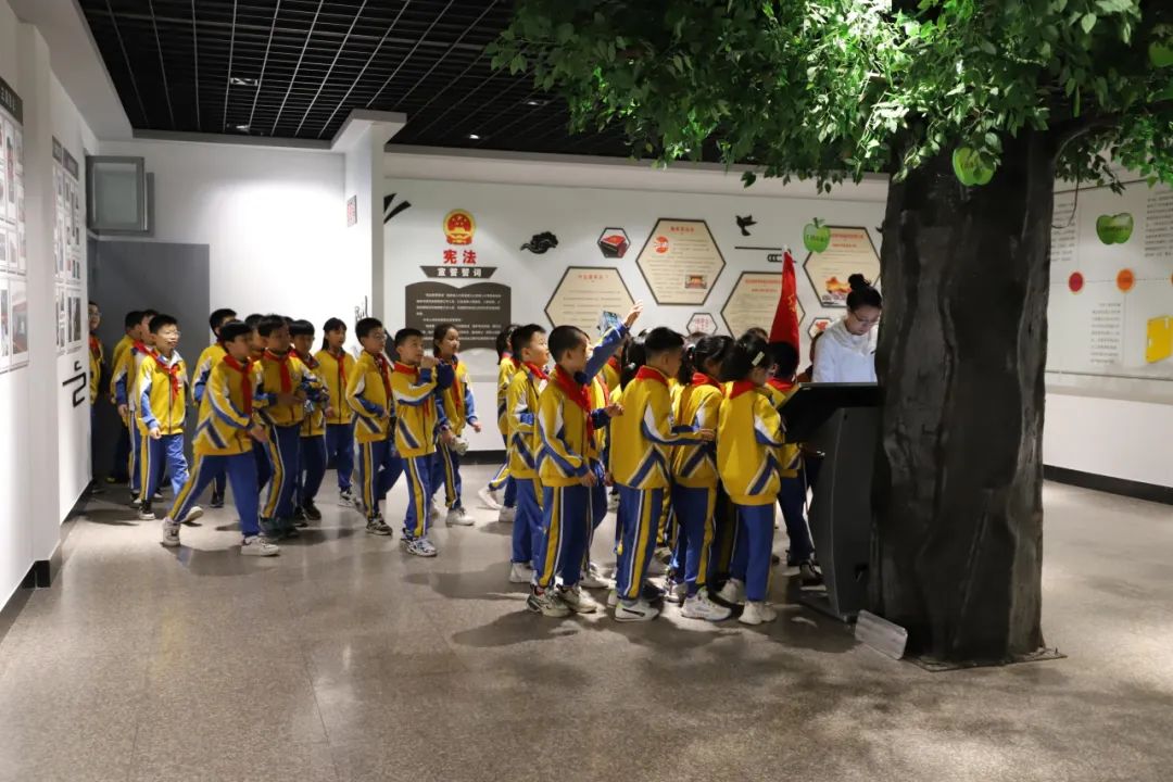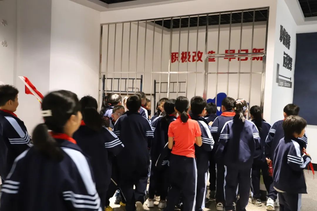 接下來,同學們來到了我校的青少年法治教育基地。沈浙峰老師介紹到:“我們現(xiàn)在所在的位置是基地展館的序廳,就像名字所蘊含的,將展示的內(nèi)容拉開了序幕。在這里,可以瀏覽到法字的各種字體和我們基地的前言。”同學們依次參觀了憲法公園、青少年法治中心、禁毒中心、法潤嵊州等展廳,收獲了不少的法治小知識。在參觀模擬法庭時,有不少同學躍躍欲試,親身體驗審判長、人民陪審、警察……等角色。